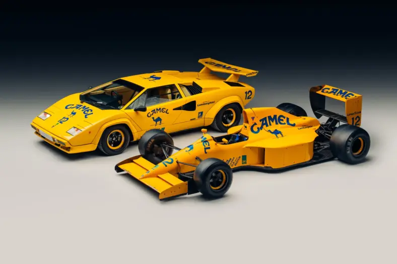Een F1-wagen met Lamborghini-hart én een bijpassende Countach? Soms komt er een verkoop voorbij ...