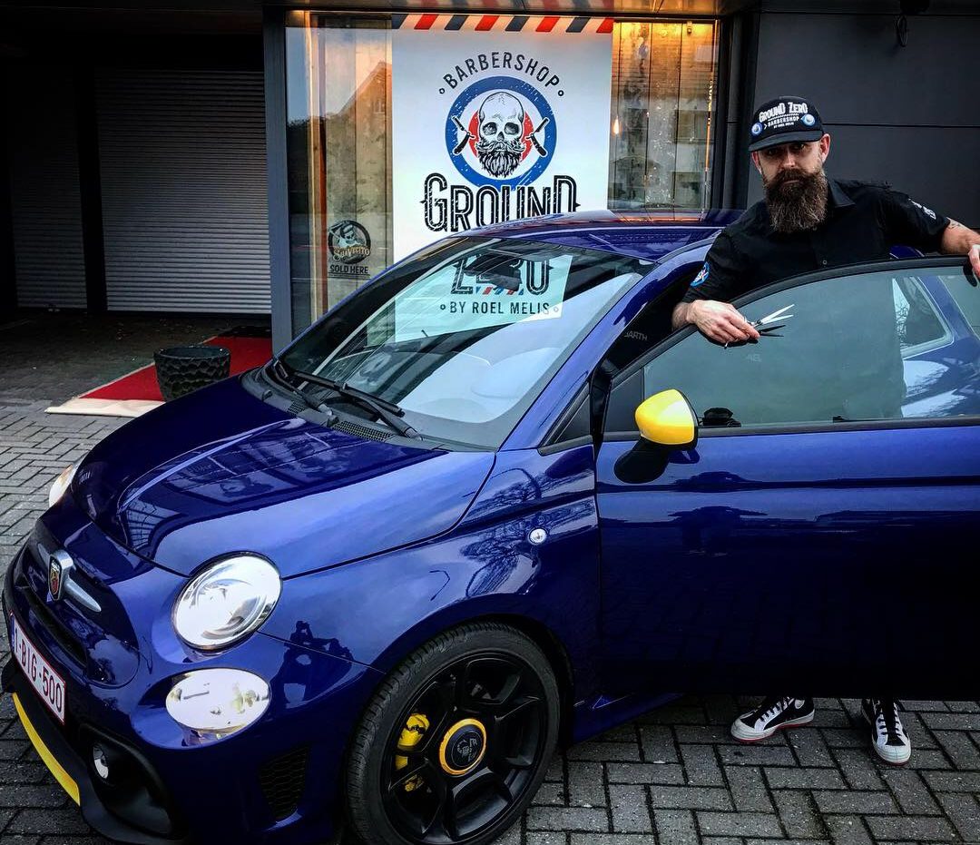 En met het feit dat we deze Abarth 595 Pista een wolf in een schapenvacht vinden werd het tijd om dat schapenvachtje te laten knippen. Geknipte kerel hiervoor is onze eigenste kapper, Roel Melis, die met zijn Ground Zero Barbershop door het leven mag gaan als de meest stoere barber van De Lage Landen. Waren het de kleuren, was het het geluid of toch eerder het meer stoere uiterlijk? Hij was fan!