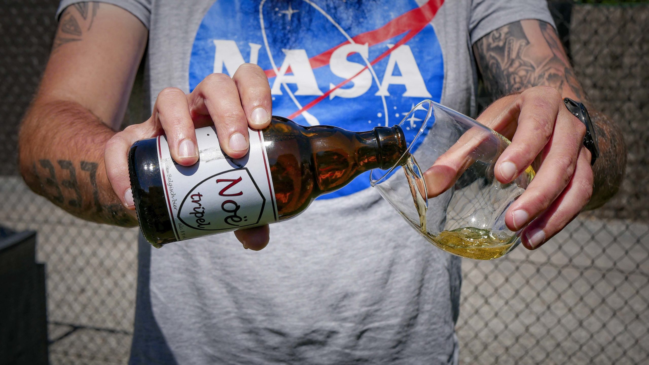 Decennia later is Noë, veel te vroeg, vertrokken naar de eeuwige bierkelders (en hem kennende gaat Sint Pieter er zijn werk mee hebben) maar zijn gigantische bierkelder bestaat nog steeds. Zijn nakomelingen, die ondertussen zelf aan het roer staan van het supermarktimperium, vonden dat ze iets moesten doen om Noë op een erg passende manier te eren en ze trokken richting kookpotten, waar de Noë Tripel tot stand kwam. Een godendrank, voorzien van 8% alcohol en met een stevige trap in het bakkes. Het is bier zoals Noë zelf was, rechtdoor en niet meteen voer voor venten die hun haar graag stylen en met kanten ondergoed rondlopen. Het is de tripel die je, tijdens de BBQ met de buddies (die allen tot je bubbel behoren) open trekt en waarvan ze na enkele slokjes even moeten gaan zitten.
