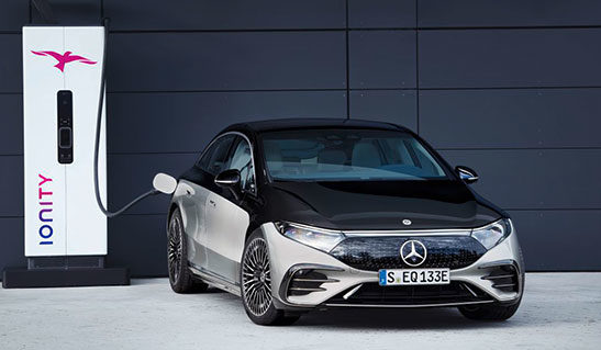 – Mercedes EQS450+, Achterwielaangedreven, 333 pk, topsnelheid 210 km/u, batterijpak van 108 kWh en 770 km rijbereik