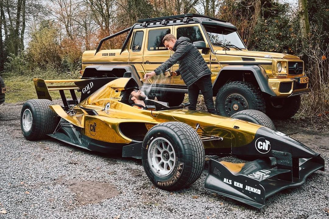 En wat parkeerde zich in zijn garage naast bijvoorbeeld een Ferrari 812 Superfast, Mercedes-AMG G63 6X6 en Lamborghini Urus? Zowaar een echte F1-wagen. Meer nog, gratis en voor niks. Zo bracht het jonge racetalent Richard Verschoor dit cadeautje omdat Joel Richard sponsort met zijn eigen bedrijf, CleanNutrition.