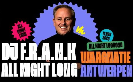 Anno 2023 draait hij op ontelbare events. Van Tomorrowland tot het Sportpaleis (MooseBar XXL, Back to the 80’s, 90’s en 00’s, Coco Loco…) naar zowat alle grote festivals in Belgie. Die festivals bieden een waaier van verschillende DJ’s, elk uur meestal een andere, uiteraard ook heel leuk! Heel veel mensen vinden het echter jammer dat regelmatig dezelfde muziek voorbijkomt, dat er vrijwel geen muzikale op- en afbouw meer is … F.R.A.N.K ondervond dit bij de eerste 3 ”All Night Long” edities in Dixies in Brasschaat. Tijdens die nachten merkte F.R.A.N.K dat mensen het leuk vinden dat ze niet 2x (of meer) hetzelfde nummer op een avond horen. Een nood aan ”uitgaan zoals vroeger” werd, bij jong en minder-jong, ingevuld.