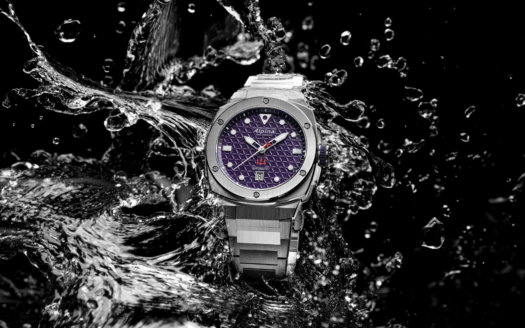 De eerste versie, in een beperkte oplage van 100 exemplaren met “1 out of 100” gegraveerd op de achterkant, is gekleed in een compleet stalen pak: kast, bezel en armband. Het antireflecterende saffierglas onthult een diep marineblauwe wijzerplaat met het driehoekige Alpina-motief. Rondom tellen grote lichtgevende uurmarkeringen de uren en minuten af, aangegeven door twee opengewerkte, met de hand gepolijste wijzers met lichtgevende punten. Op 6 uur zweven ze boven het drietandlogo van de ARKEA ULTIM CHALLENGE – Brest. Het horloge voldoet aan de Zwitserse kwaliteitsnormen, heeft een satijnachtige afwerking en een grip van de kroon die bij de kleur van de wijzerplaat past.