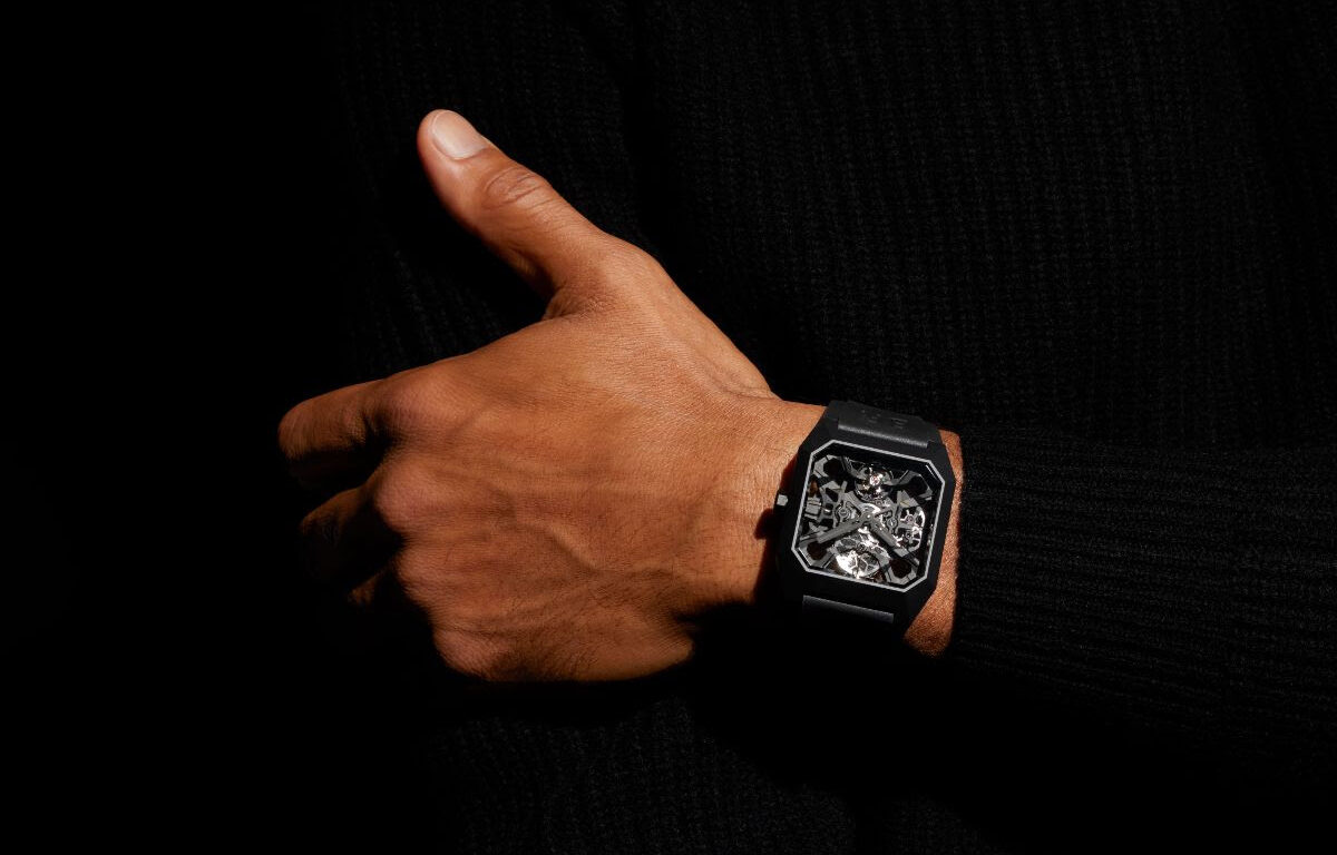 Met zijn definitieve gedurfde tint is het onmogelijk om de nieuwe BR 03 Cyber Ceramic niet onmiddellijk op te merken. Het paradoxale matzwart dat voor het horloge werd gekozen is even discreet als spectaculair. Een onconventionele keuze voor een horloge, weg van de gebruikelijke kostbare materialen die in de traditionele horlogerie worden gebruikt. Om het ontwerp tot een succes te maken, heeft Bell & Ross bewust gekozen voor meer technische en eigentijdse componenten. De kast van 42 x 43,7 mm is gemaakt van keramiek, een geavanceerd materiaal dat complexe productiemethoden vereist die worden uitgevoerd bij zeer hoge temperaturen, wat een verhoogde weerstand biedt. “Het slijpen met diamantpoeder maakte het mogelijk om de facetten opnieuw te laten glanzen, zoals juweliers een kostbare steen slijpen. Om de puurheid van het ontwerp te bewaren, zijn de hoorns verdwenen en is de behuizing voor de rubberen band in de kast gesneden”, legt Belamich uit. Bell & Ross koos opnieuw voor keramiek, een high-tech materiaal dat zowel sterk als licht is, om de twaalf metalen indexen en het logo te versieren, behandeld in glanzend zwart onder het oppervlak van het ontspiegelde saffierglas. Met facetgeslepen hoeken en strakke lijnen, in het hart van het avant-gardistische ontwerp, is een manufactuur uurwerk met 5 jaar garantie ondergebracht in dit uitzonderlijke uurwerk.