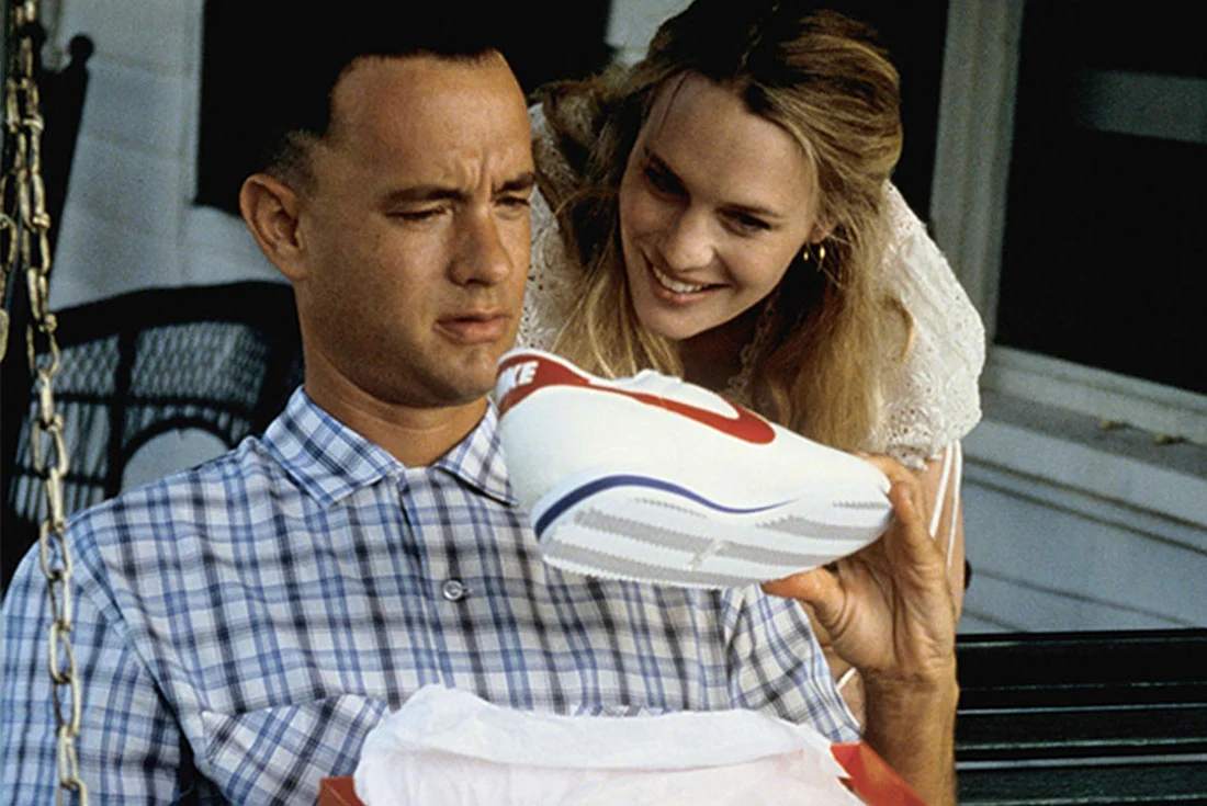 Een van de meest iconische objecten in deze steengoede film waren sneakers en sneakeraddicts weten dan ook meteen dat het gaat over de Nike Cortez. Deze iconische sloffen debuteerden in 1972 en kregen een serieuze revival na de Super Bowl van 1991 waar ene Whitney Houston deze exemplaren aan haar voeten had tijdens haar optreden bij de ‘Half Time Show‘ om deze stunt drie jaar later nog eens over te doen aan de lopende voetjes van Tom Hanks.