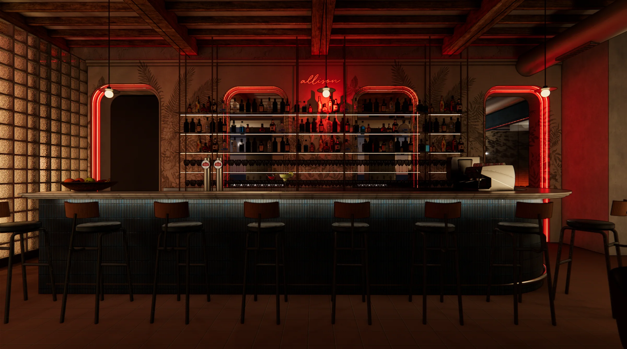 De centrale ligging van de bar leent zich perfect als uitvalsbasis om je avond in de Vlaams-Brabantse hoofdstad in stijl in te zetten. Laat je onderdompelen in de zwoele ambiance van de bar. Dankzij de warme kleuren en sfeervolle verlichting kan je even volledig ontsnappen aan de drukte van de stad. Allison is ook ideaal voor een snelle, gezonde lunch gezien de zaak haar deuren reeds op de middag opent. En als het weer dan toch eindelijk mee zit, is het de ideale locatie om te genieten van het zonovergoten Hogeschoolplein.
