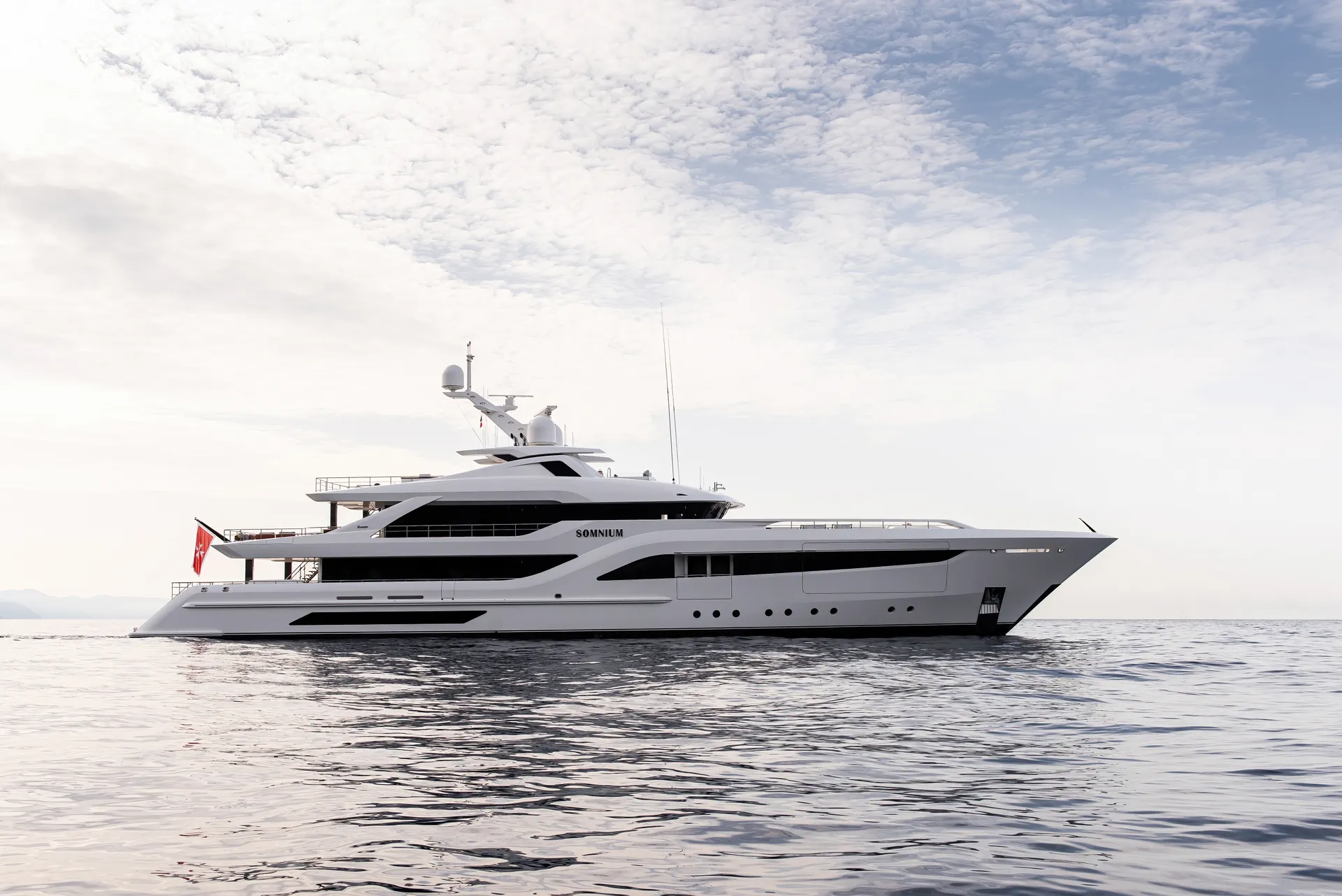 Somnium is ontworpen door Studio De Voogt met een prachtig interieurontwerp van FM Architettura. De aluminium romp ziet er goed uit en werd ook gekozen om de efficiëntie te verbeteren en te zorgen voor de geringe diepgang die nodig is om naar believen de mooiste plekjes te verkennen. Eenmaal voor anker op hun bestemming, kan de familie gebruik maken van alle voordelen van een afgesloten tendergarage en een speciale duikuitrustingopslag. Degenen die ervoor kiezen om aan boord te blijven, worden evenzeer verwend op de grote buitendekken waaronder een exclusieve lounge op het voordek, een zwembad met verstelbare bodem en tegenstroom op het achterdek en een uitnodigend jacuzzi-eiland op het zonnedek. Hoogtepunten in het interieur die te zijner tijd worden onthuld, zijn onder andere een fitnessruimte met een neerklapbaar platform, een eigenaarshut met balkon en vier ruime gastensuites op het benedendek.