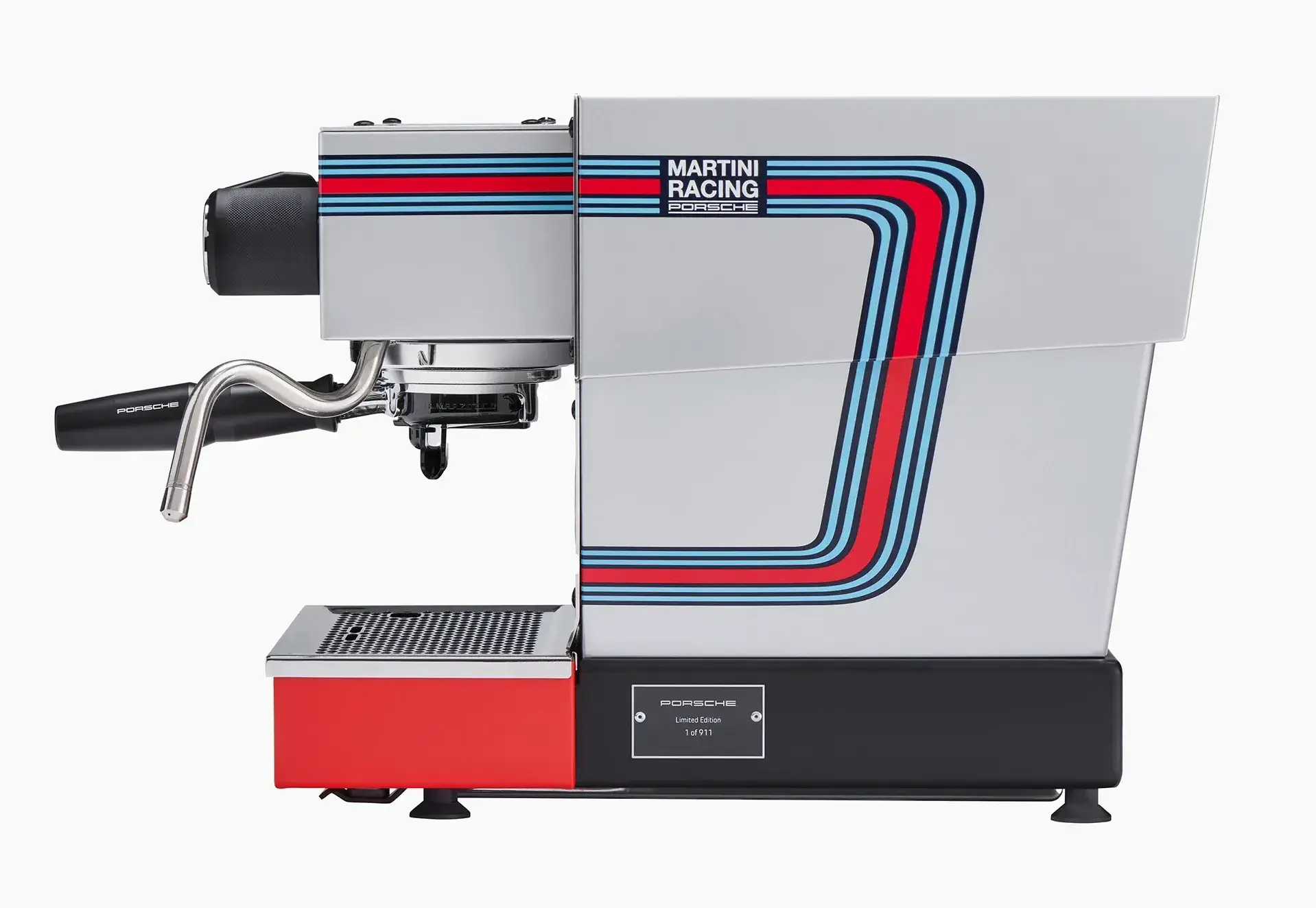 Het verfijnde espressoapparaat is beperkt tot slechts 911 eenheden, met een knipoog naar Porsche’s beroemdste model zelf, de 911, die we hier al eens aan een test onderworpen. Het levert ‘ongeëvenaard koffiegenot bij je thuis’ aldus Porsche Design, dat tevens ook een paar van zijn machines ‘wrapte’ in zijn iconische Martini Racing-kleuren.