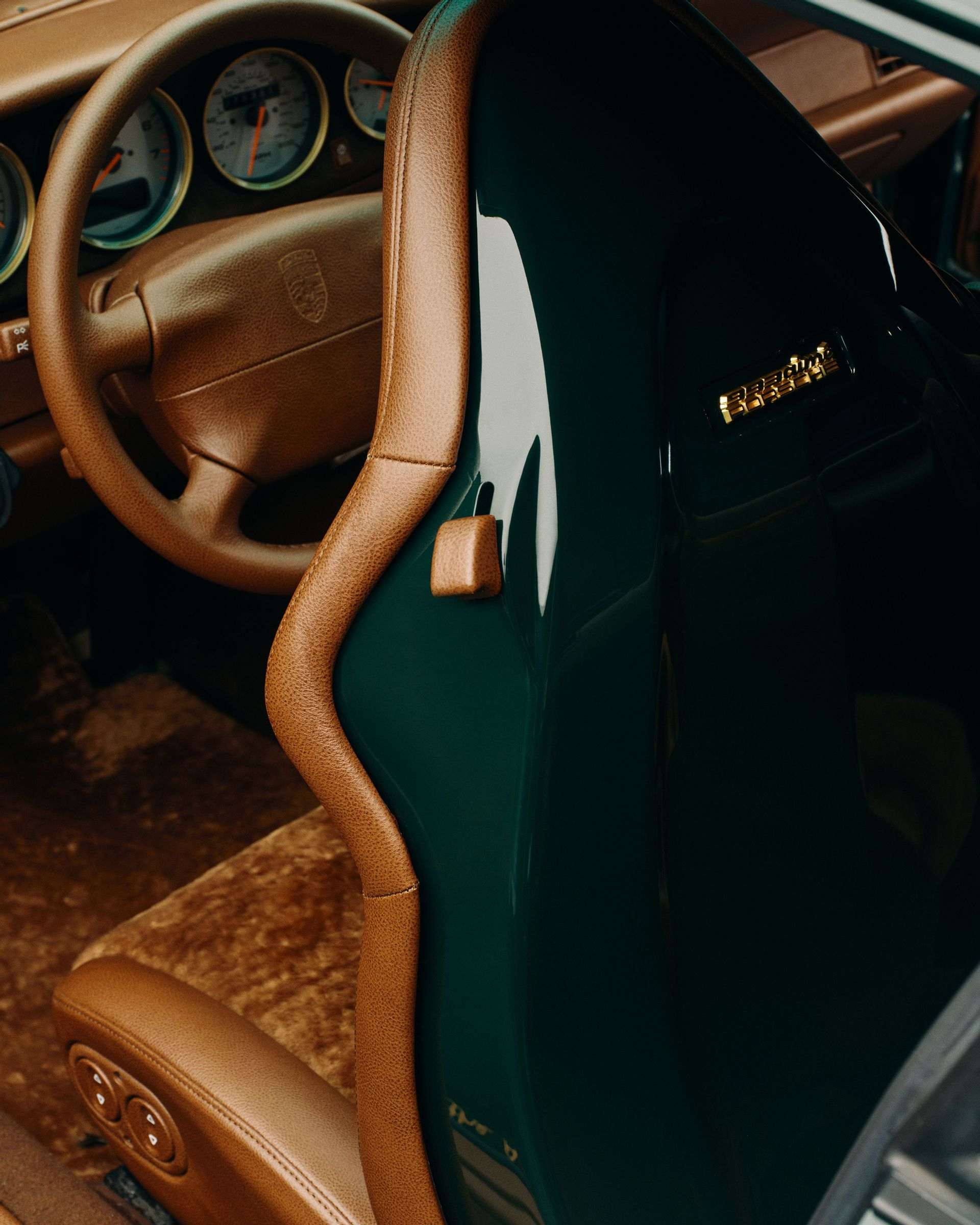 Een mix waarop the New Yorkse brand nu ook loslaat op een Porsche 993 Turbo in het heerlijke Mulberry Green, een opvallende en vooral erg mooie lakkleur die de heerlijke vormen, zoals de ‘whale tail’ en extra gouden accenten van deze 993 extra mooi in de verf zet.
