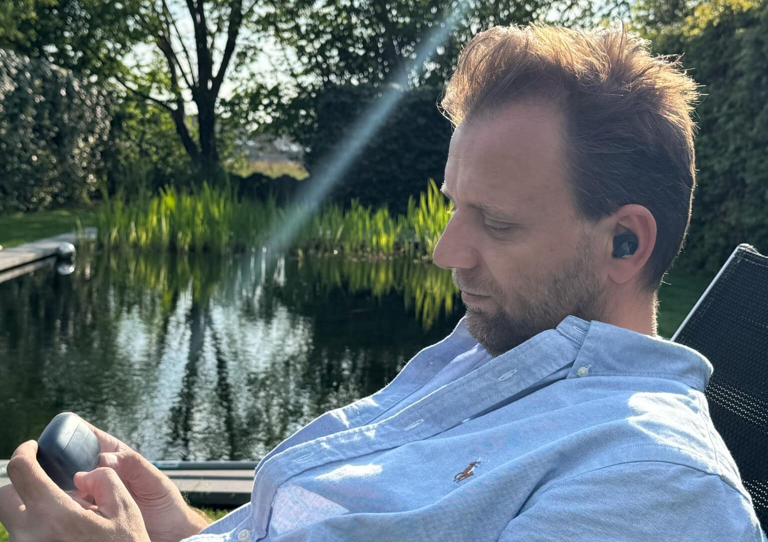 De behuizing mag dan wel van kunststof zijn, niets aan de afwerking voelt goedkoop. Alles ademt “premium”, zonder dat het opzichtig wordt. Het zijn de details die het ‘m doen: de subtiel ingesneden groef langs de rand van de oordopjes, die niet alleen functioneel is (voor de microfoons en sensoren), maar ook bijdraagt aan het stijlvolle voorkomen.