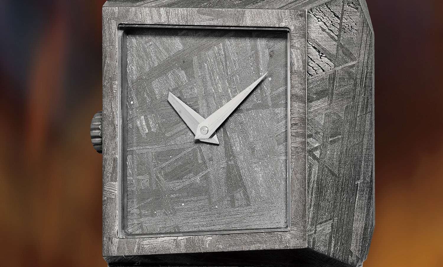 Waar de Zwitserse concurrentie nog druk bezig is met het perfectioneren van eeuwenoude tradities (lees: goud, glans en glorie), besloten kunstenaar Phillip Toledano en horlogemaker Alfred Chan een sprong te maken die je eerder in een sciencefictionfilm verwacht: ze gebruikten een meteoriet – ja, zo’n ding uit de ruimte – om een compleet horloge van te maken. Niet alleen het uurwerkje binnenin, maar de hele kast, wijzerplaat, lugs en noem maar op zijn uit één kosmisch brokstuk gesneden.