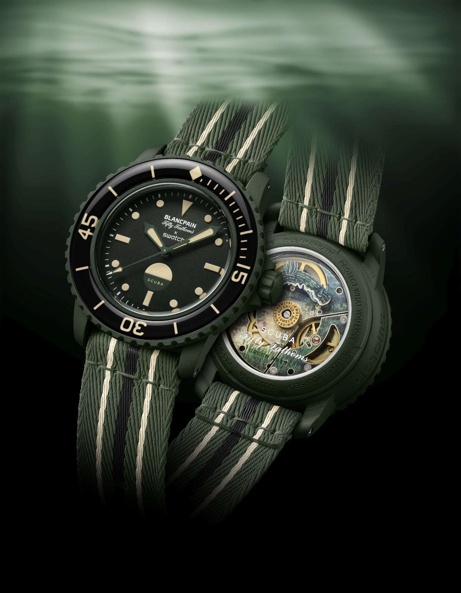 Als je dacht dat je pols nog niet klaar was voor een stukje oceaanmagie, dan hebben Swatch en Blancpain nieuws voor je. Ze duiken opnieuw samen het diepe in met de GREEN ABYSS, het nieuwste model in de gewilde Bioceramic Scuba Fifty Fathoms collectie. En ja, deze samenwerking is weer alles wat je niet wist dat je nodig had – tot je het om je pols schuift.