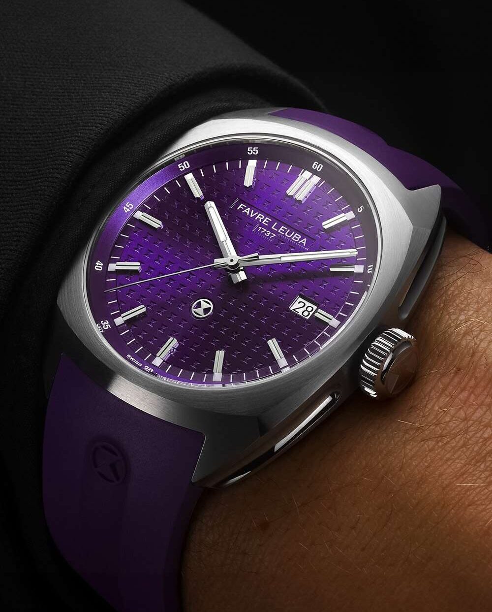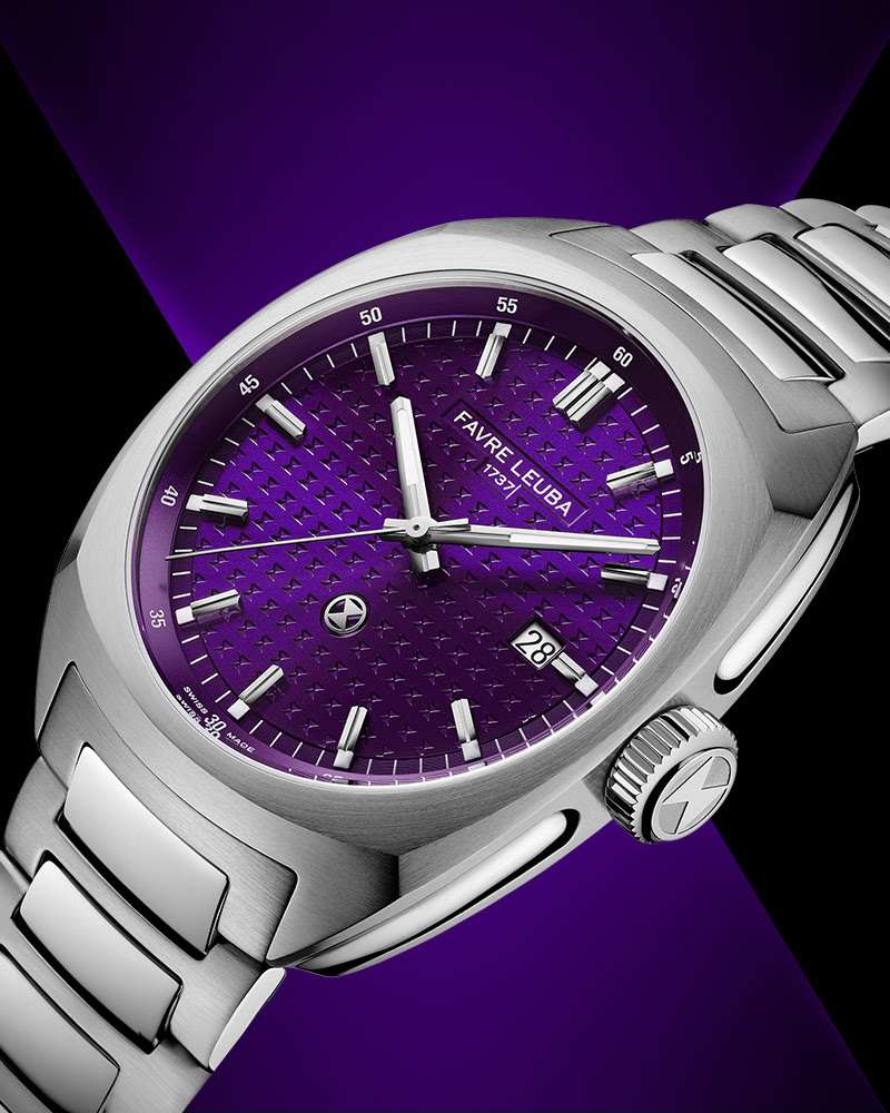 Want wie zegt dat een uurwerk louter functioneel moet zijn, heeft duidelijk de nieuwe Chief Date Royal Purple van Favre Leuba nog niet om de pols gehad. Deze Zwitserse schoonheid is allesbehalve verlegen — met een elektriserende paarse wijzerplaat en een design dat tegelijk nostalgisch én hypermodern aanvoelt.