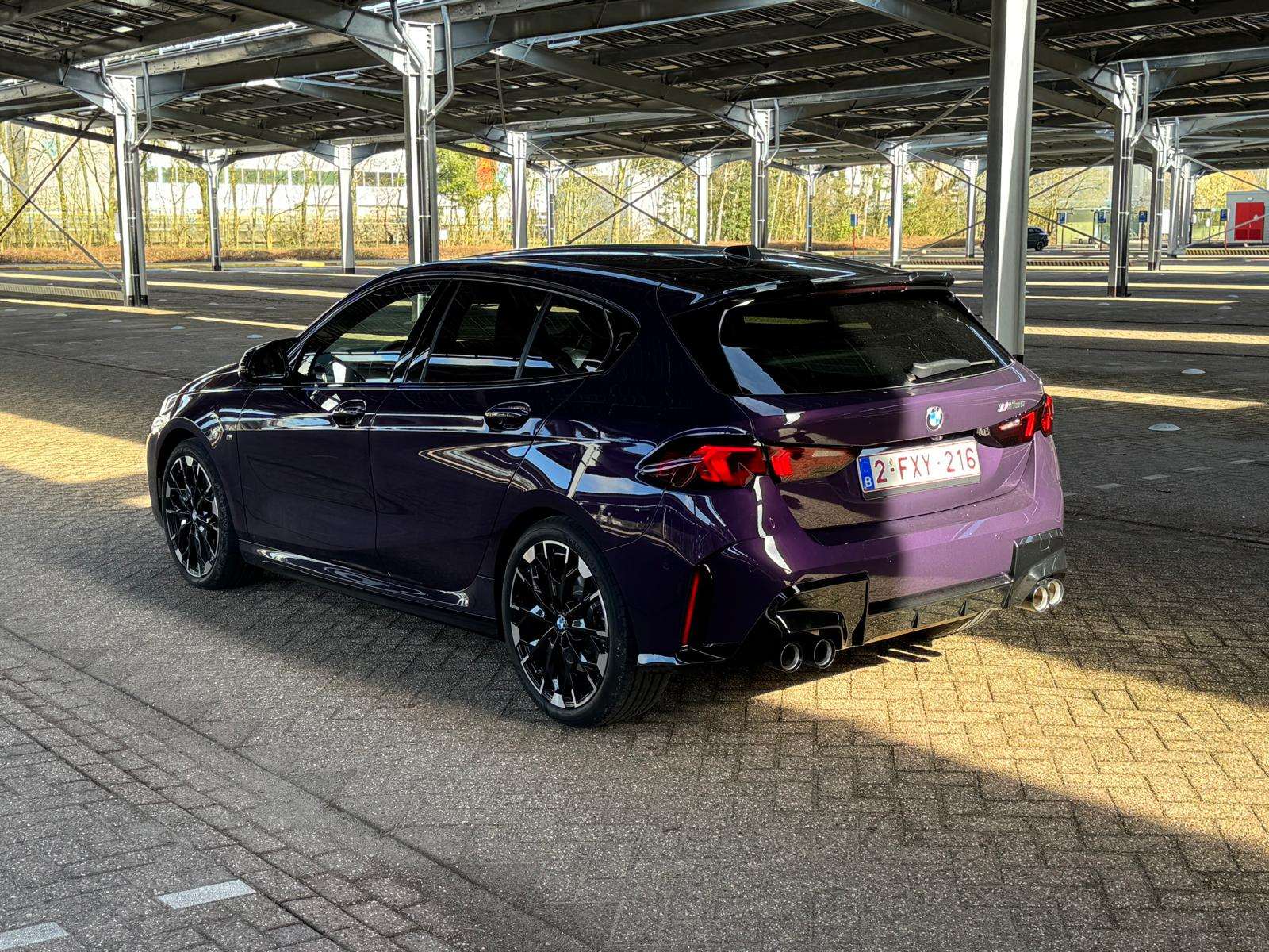 Aan de overkant van het speelplein staat de M135 — het vlaggenschip van de 1 Reeks en de spirituele opvolger van de legendarische M140i. Alleen… zonder die heerlijke zes-in-lijn en achterwielaandrijving. “Auw,” horen we je denken. Klopt. Maar er is hoop.