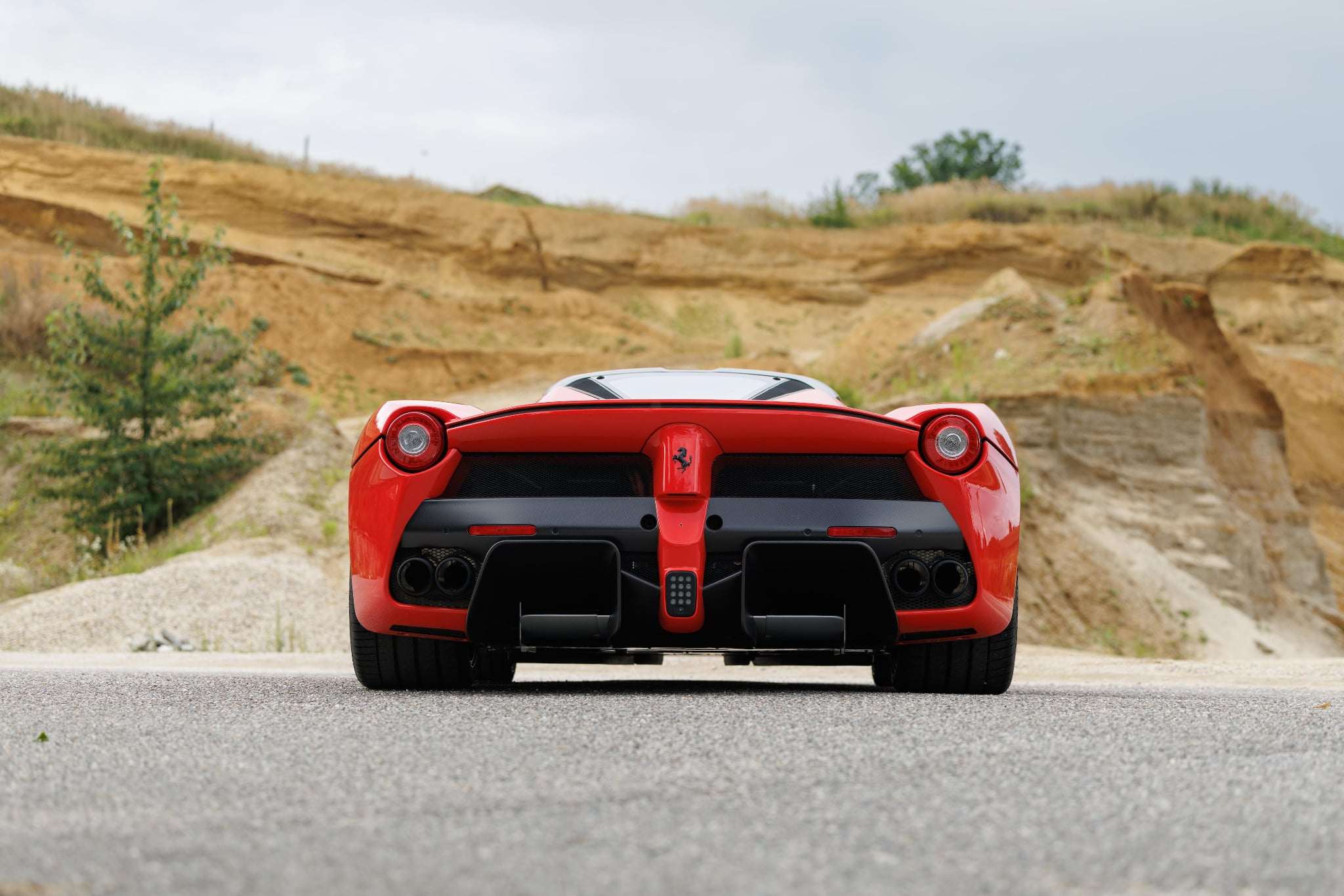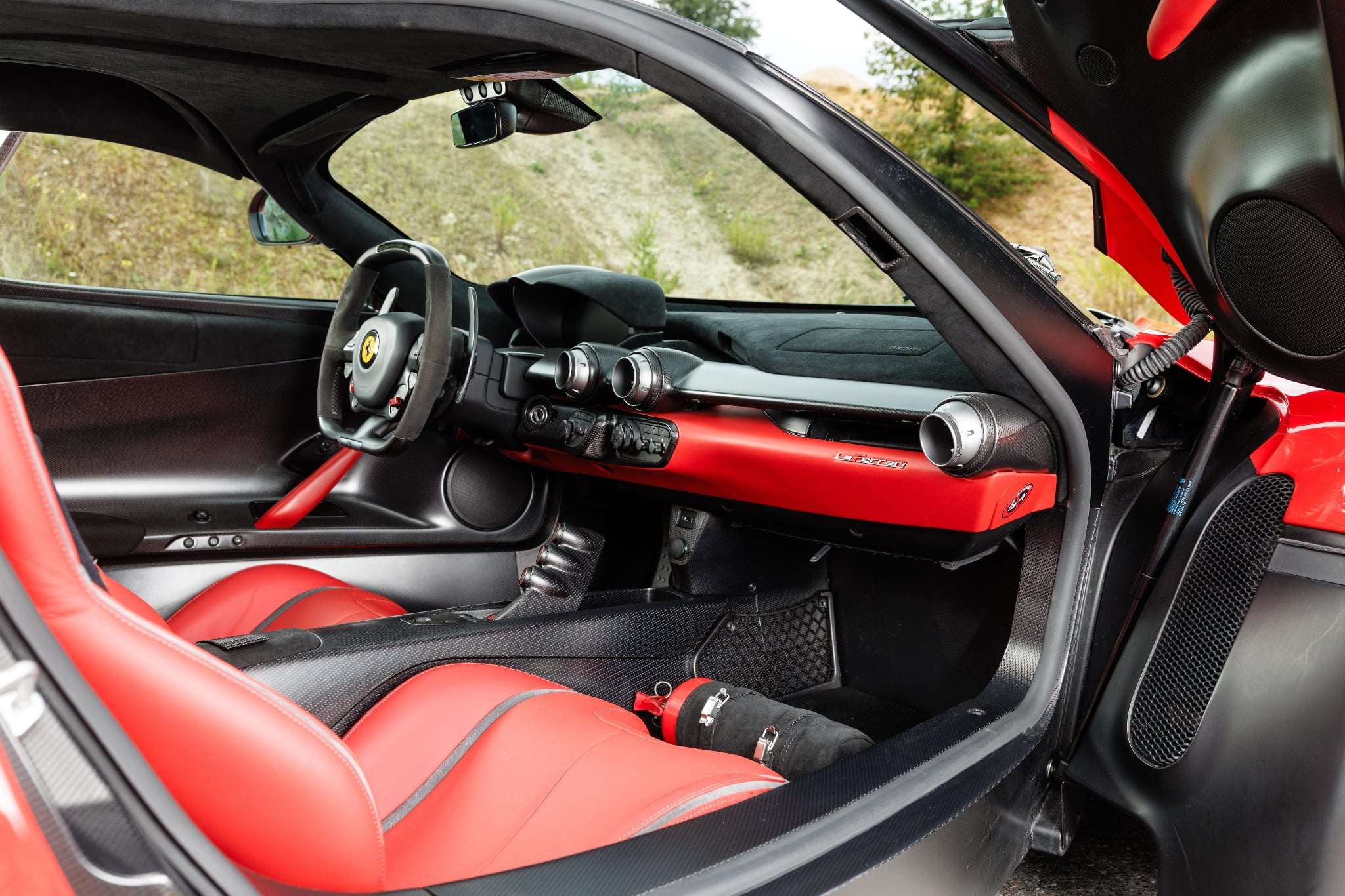 Aan de andere kant van de veilingzaal staat een LaFerrari, die in vergelijking met de MC12 wat minder exclusief is – 500 coupés en 210 cabrio’s werden er gebouwd – maar minstens even begeerlijk. De 6.3-liter V12 is goed voor 800 pk, en dankzij het KERS-hybridesysteem komt het totaalvermogen uit op een krankzinnige 963 pk.