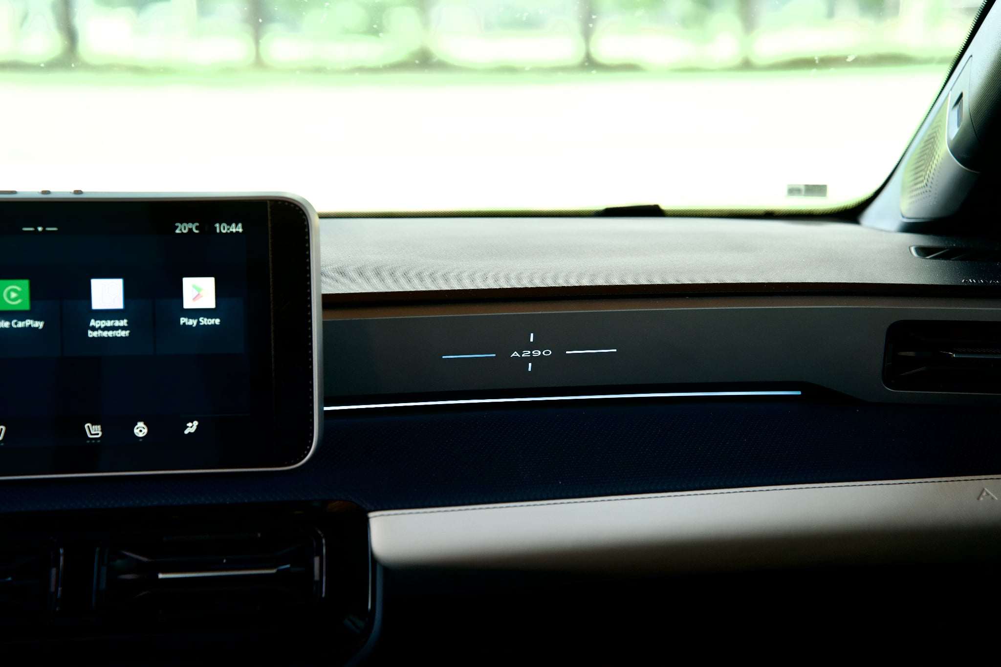 Met z’n 1.470 kilo is de A290 een pluimgewicht onder de EV’s. Dat merk je meteen in bochten: hij voelt lichtvoetig, strak en betrokken. Je kan hem makkelijk in een flow rijden – gas los, insturen, weer oppakken – en de achterkant danst subtiel mee. Vergeet de steriele EV’s, dit is weer écht autorijden.