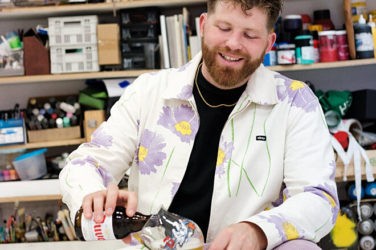 Waar Noel norse charme heeft, is Liam de koning van jolig en snedig. Zijn Achille SPZL is een ander model, uitgevoerd in beige met donkerbruine accenten – een beetje rock-’n-roll, maar net genoeg klassiek om op zondag bij je schoonmoeder te dragen. Ook hier prijkt de trotse Gallagher-kop op de tong. Zelfde deal: €130, alleen via loting in de Adidas Confirmed-app.