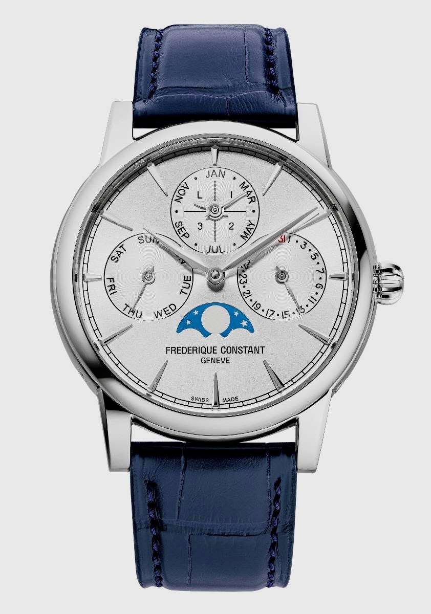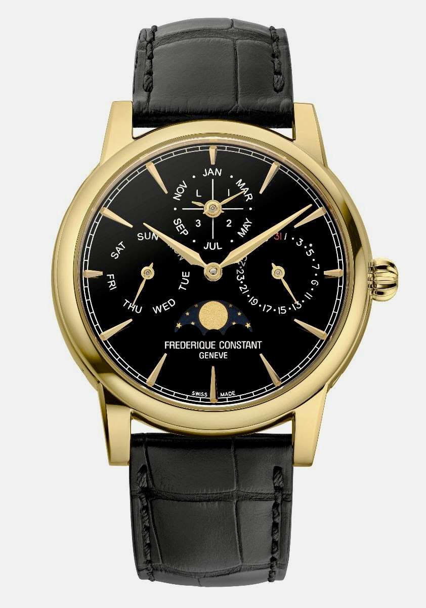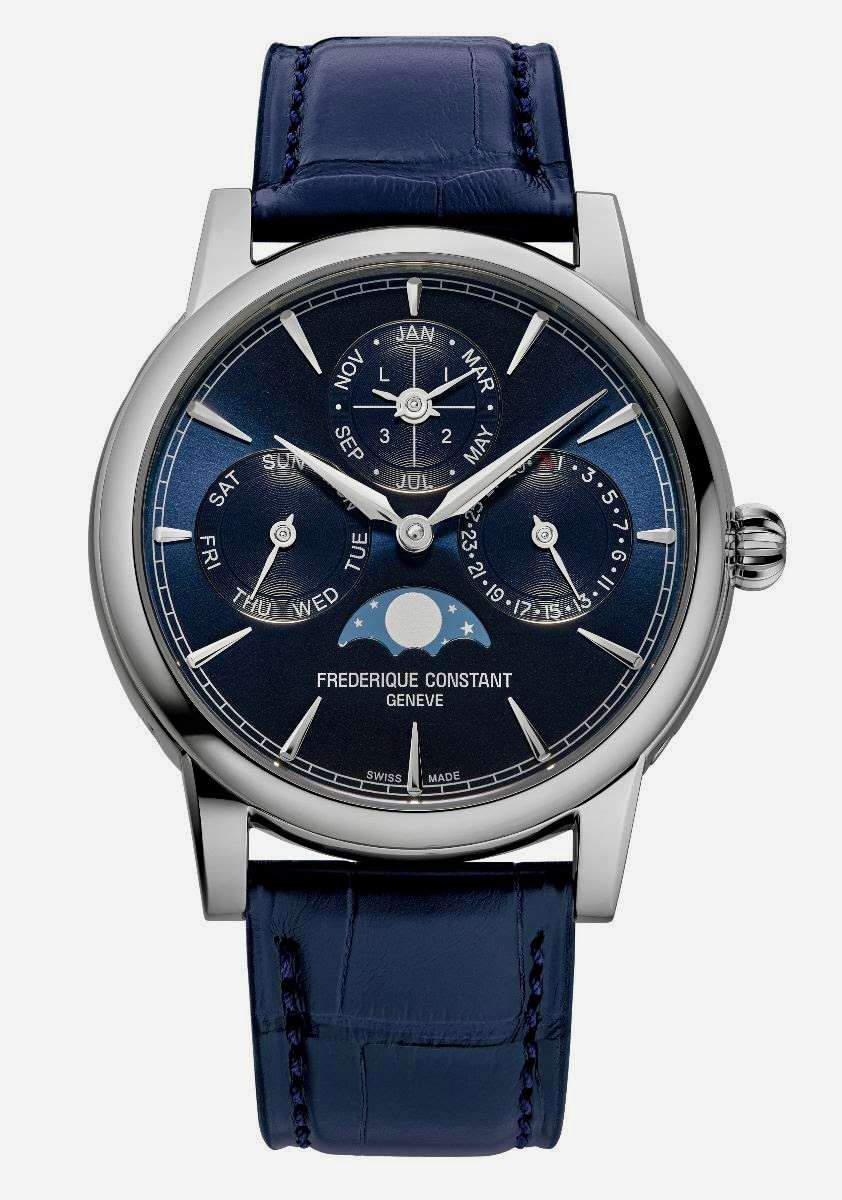 Een horloge dat de tijd beter begrijpt dan jij na drie espresso’s? Enter de Frederique Constant Classic Perpetual Calendar Manufacture. Het Geneefse huis dropt drie nieuwe varianten van zijn vlaggenschip-QP: twee in staal (blauw of zilver) en eentje in 18-karaats geelgoud met een zwarte onyx wijzerplaat – gelimiteerd tot 37 stuks, voor de happy few die geen schrik hebben van exclusiviteit.