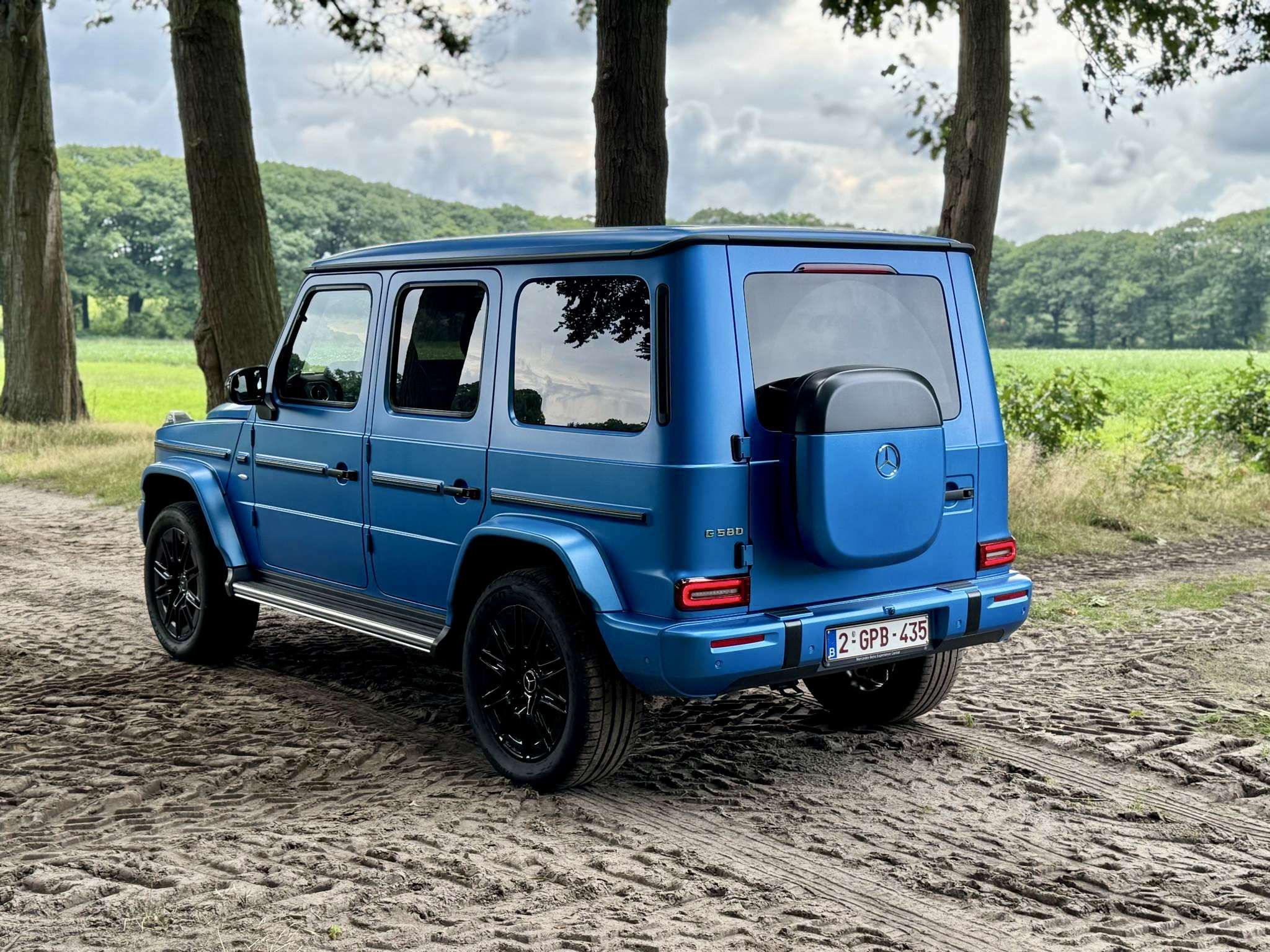 Achterin wordt de illusie wat doorbroken. Je zit hoog en stoer, maar de beenruimte is die van een middenklasser. Voor bagage krijg je 555 liter – genoeg voor een weekendje Saint-Tropez met een set koffers, een doosje Cubanen en een paar flessen whisky. Klap je de bank plat, dan wordt dat 1.990 liter. Maar eerlijk: geen enkele man koopt een G-Klasse om zijn verhuis te doen. En de eerlijkheid gebiedt ons ook te zeggen, de G 580 ook niet om een op stroom gedreven tripje van 1.250 kilometer naar Plage de Pampelonne te ondernemen.