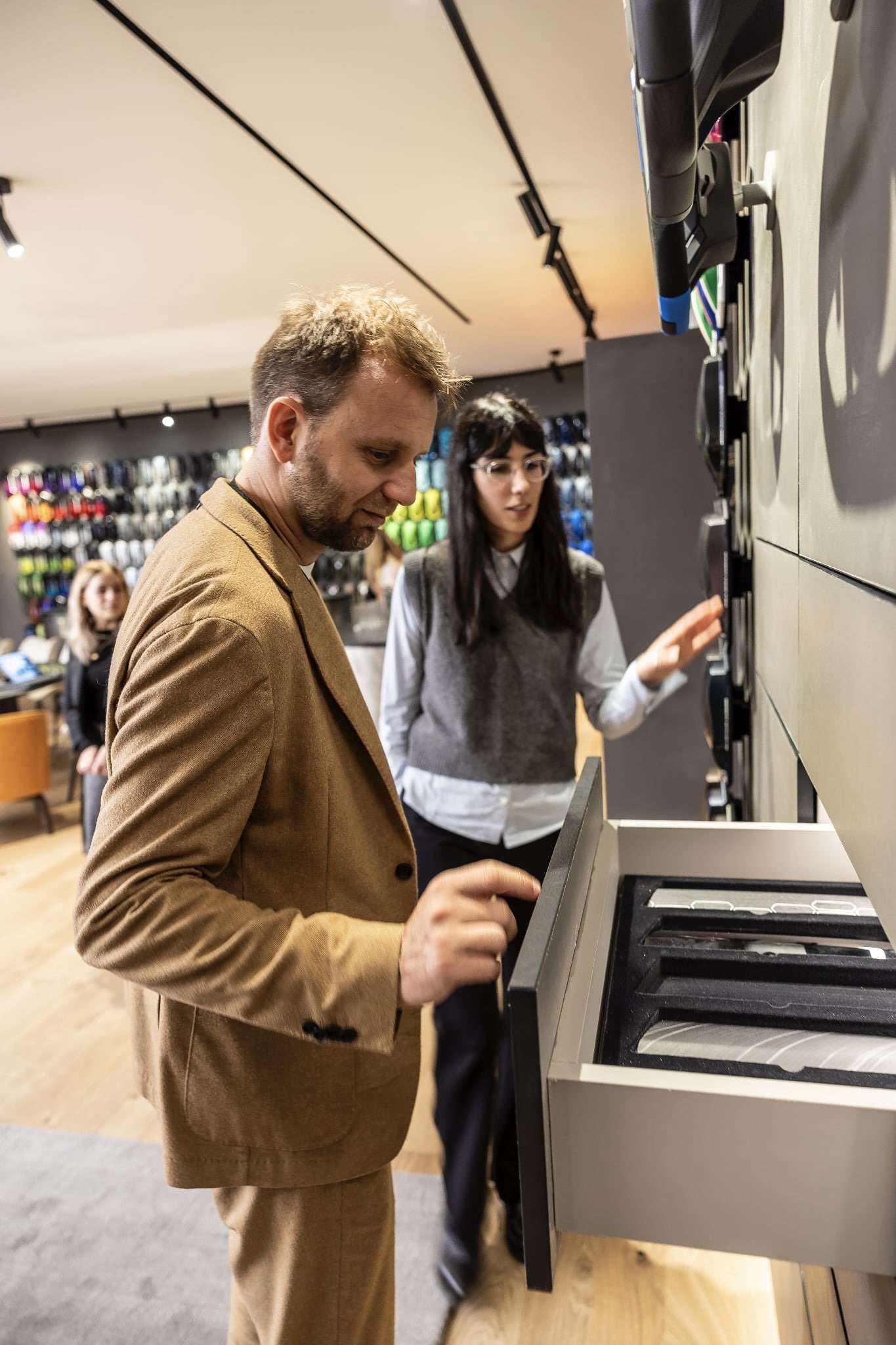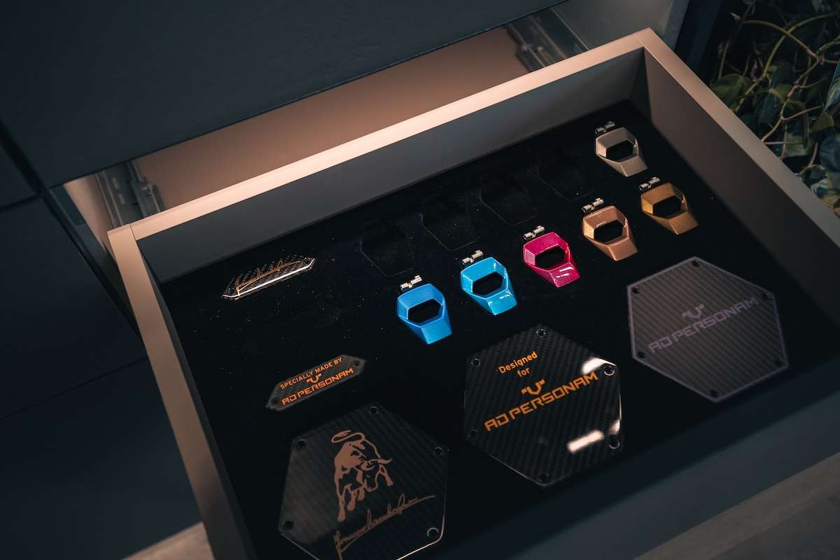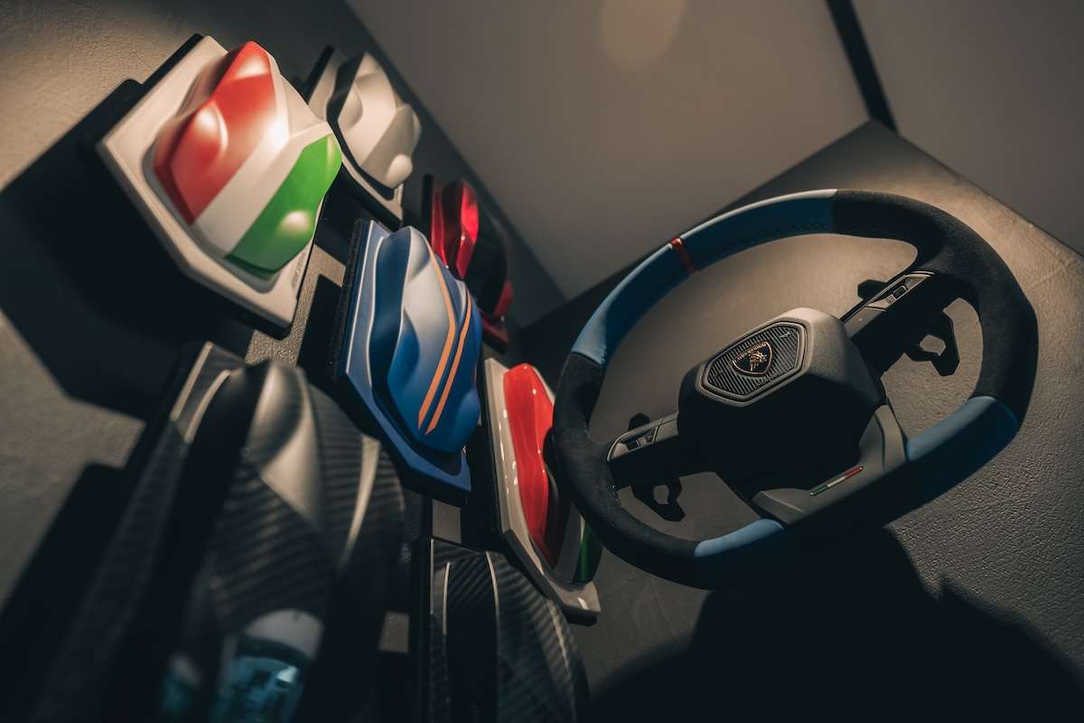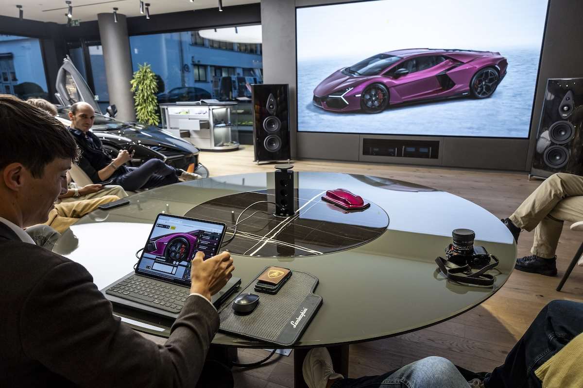 Na een verfijnde lunch bij La Nunziadeina betreden we het Ad Personam Studio, waar klanten hun Lamborghini volledig personaliseren. Van Harlequin-kleuren tot Fading-laklagen en handgestikt leder: alles kan, alles mag. Dankzij een phygital experience voel en zie je hoe jouw keuzes tot leven komen.