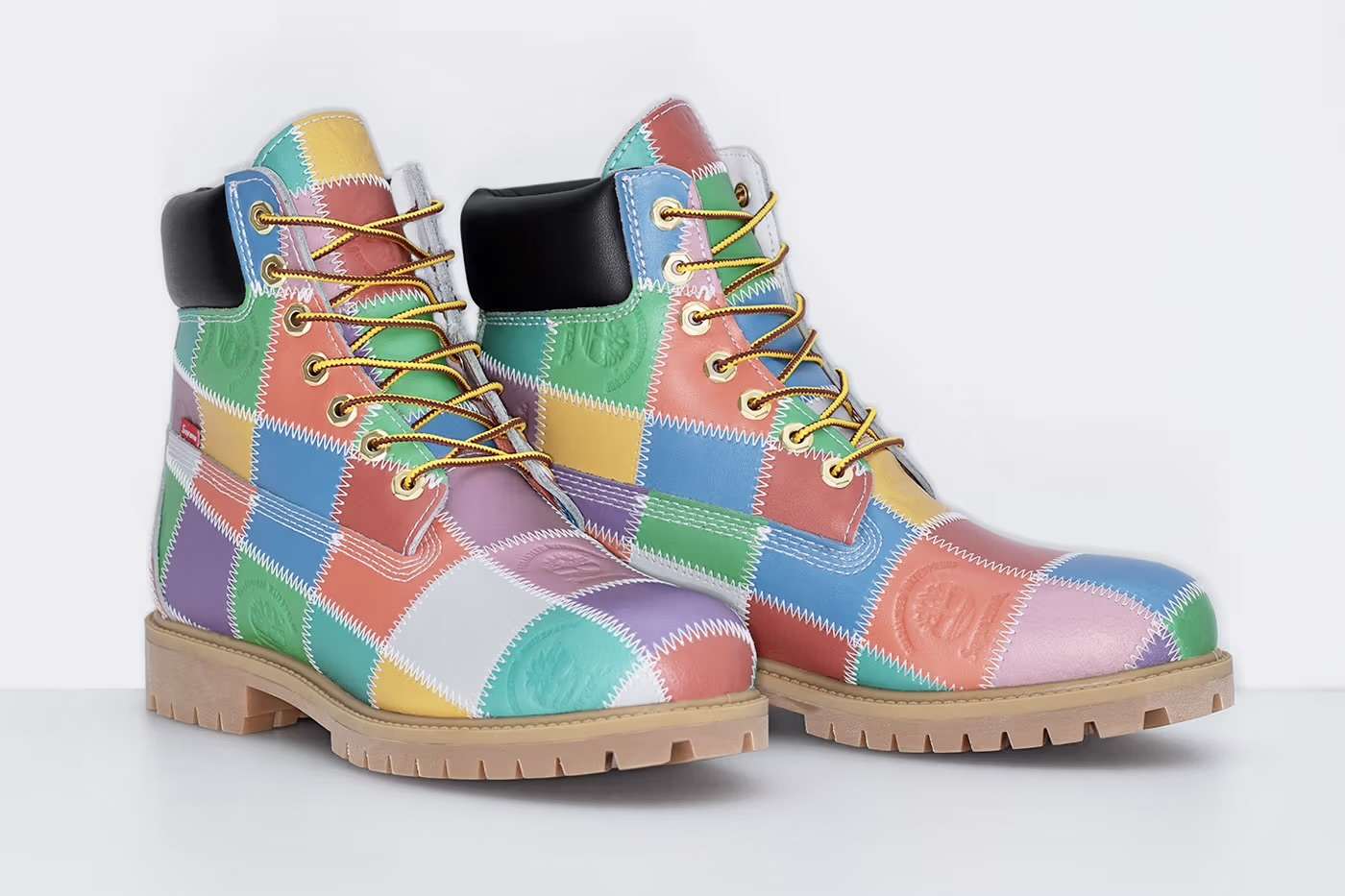 De Supreme x Timberland Fall 2025-collectie komt in drie colorways — klassiek zwart, iconisch tan en een multi-color patchwork voor de durvers. Drop op 6 november wereldwijd, morgen dus, via Supreme’s webstore en fysieke winkels.