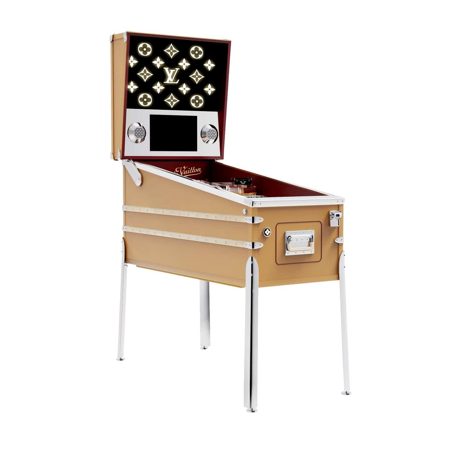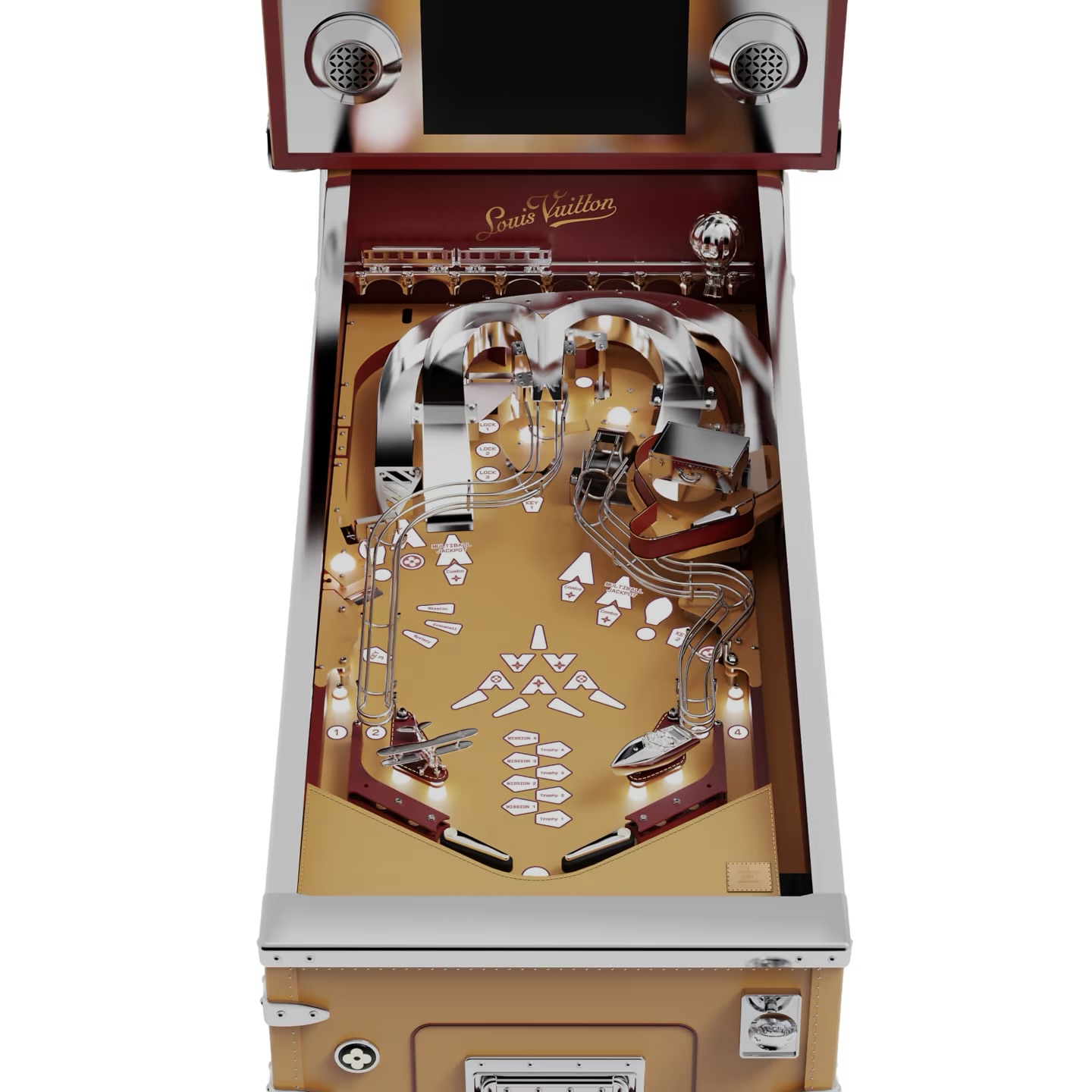 Het spel werkt klassiek, zoals het hoort: lichtjes, geluidseffecten en die herkenbare spanning van het stalen balletje. Maar de afwerking tilt alles naar een hoger niveau. De kast doet denken aan een oversized Louis Vuitton-koffer, afgewerkt met de beroemde LV-print en een uitgesproken kleurenschema. Elk detail ademt ambacht, iets waar het modehuis al generaties lang om geroemd wordt.