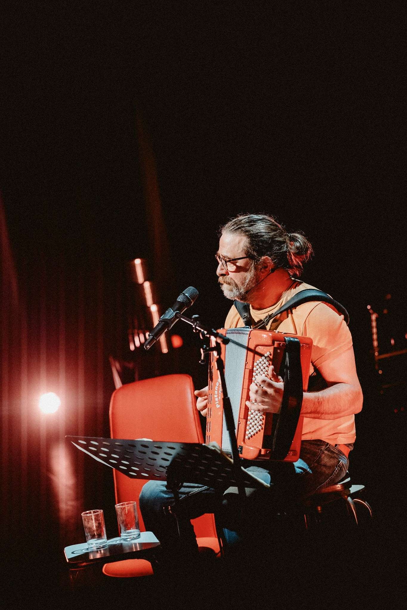 Toen ik besloot er een voorstelling van te maken, begon ik meteen met mijn accordeon en maakte ik muziekjes. Dat doe ik trouwens vaak. Op dit moment ben ik bezig met een tweede show, ook daar zal muziek een belangrijke rol spelen. Dan besef ik dat het eigenlijk wel een druk maar prachtig leven is dat ik leid. Ik ben actief als acteur, muzikant, regisseur en auteur tegelijk.