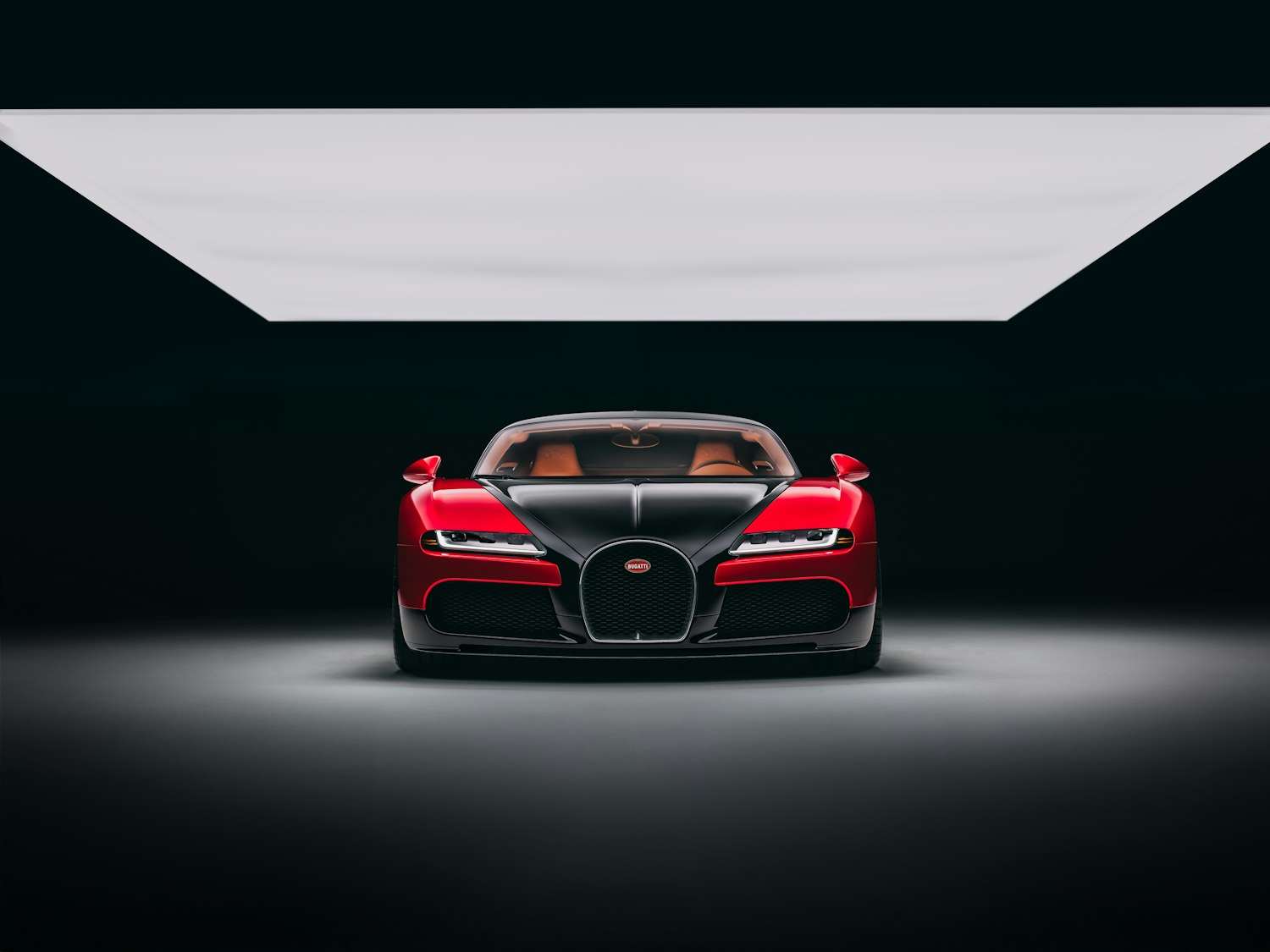 De stance is serieuzer dan ooit, met 20-inch wielen vooraan en 21-inch achteraan, omwikkeld met Michelin’s nieuwste high-performance rubber. De lakafwerking is pure Bugatti-excess: een aluminiumkleurige basislaag met daarboven een transparante rode tint, waardoor de oppervlakken bijna lijken te gloeien. Zichtbaar carbon krijgt een donkere twist dankzij zwarte pigmenten in de blanke lak.