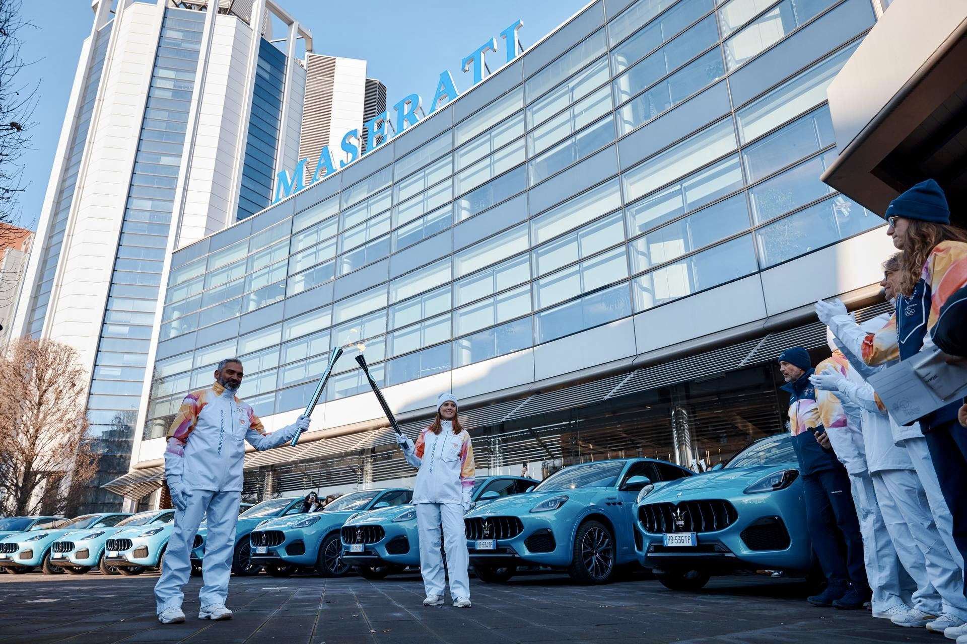 🔥 De Olympische fakkel staat voor continuïteit, vrede en menselijke ambitie — waarden die verrassend goed passen bij Maserati’s visie op moderne luxe.