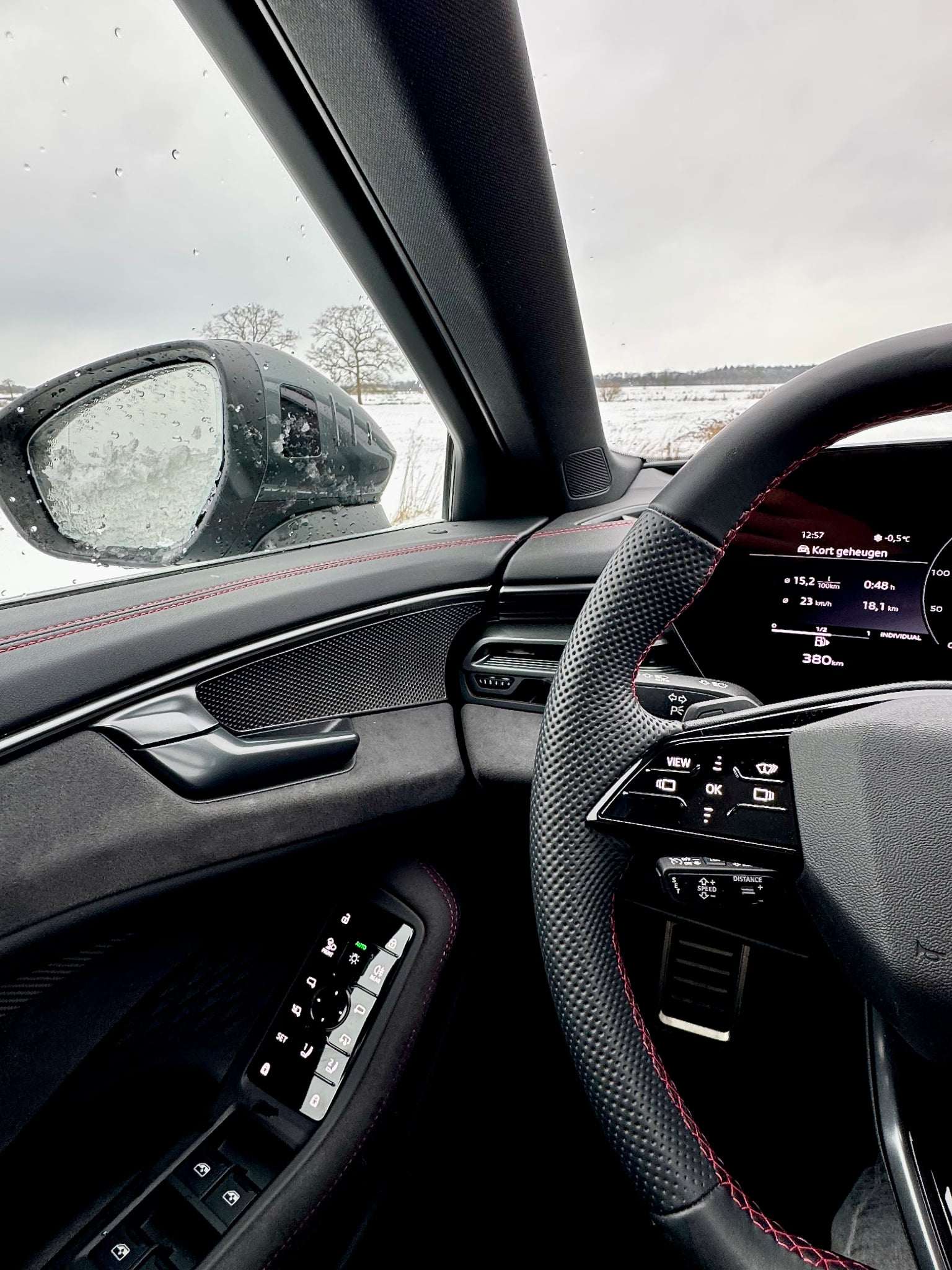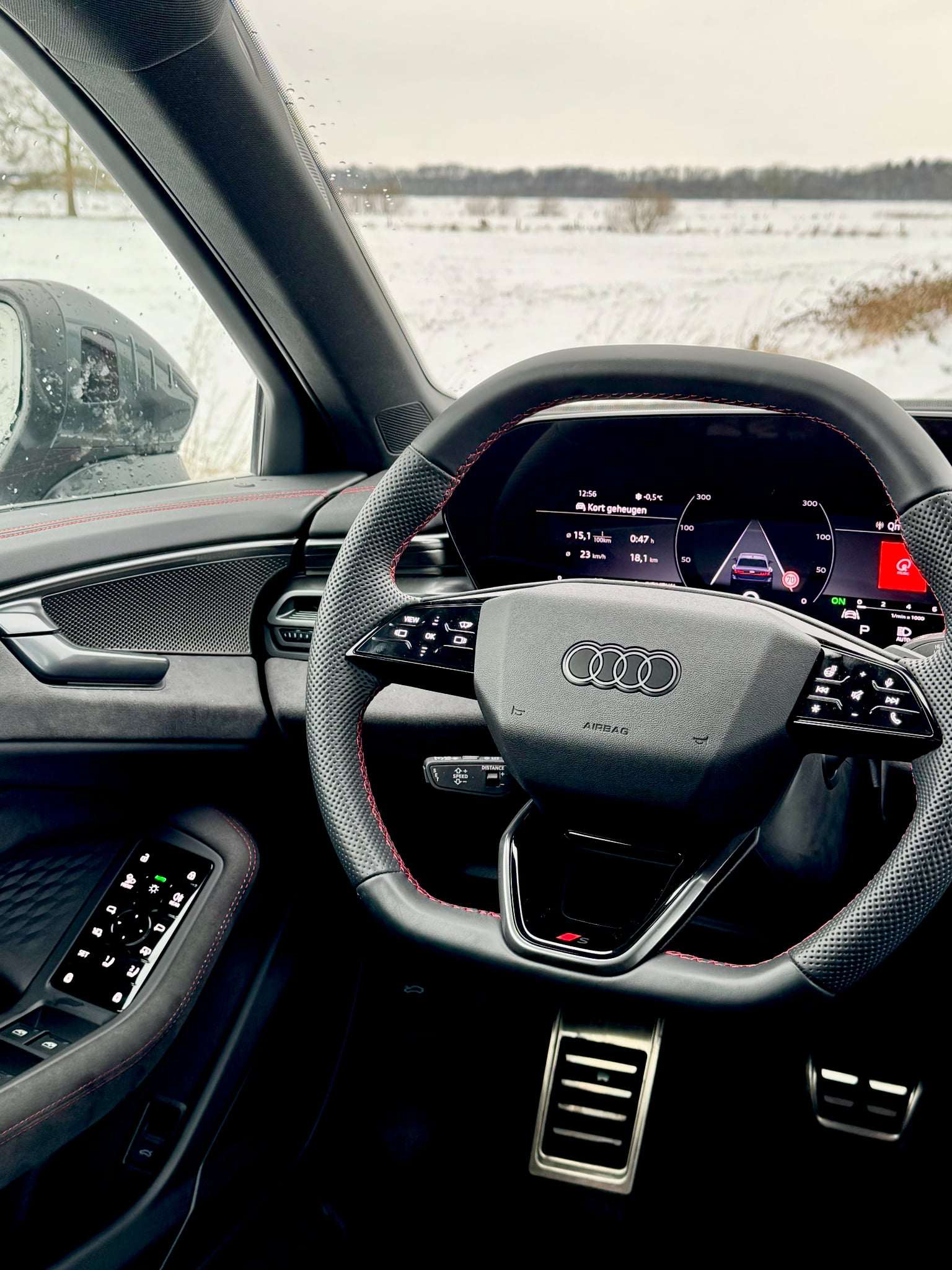 Stap je in, dan weet je meteen waar je bent: in een moderne Audi. Tot drie schermen domineren het interieur: de 11,9” Virtual Cockpit, een 14,9” centraal display en optioneel een 10,9” scherm voor de passagier. Alles draait op Android Automotive OS, inclusief ChatGPT-spraakbediening en apps zoals YouTube.