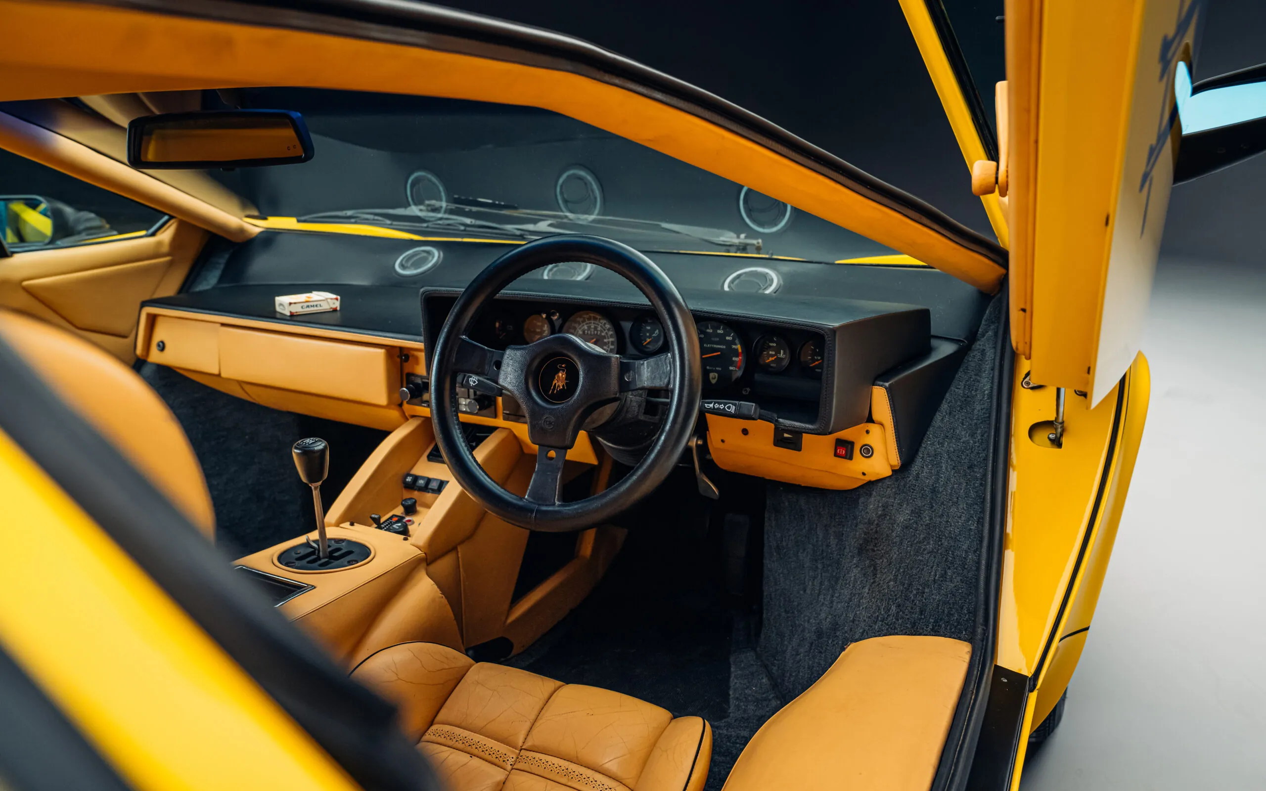 De Countach 5000 QV in bijpassende Camel-kleuren