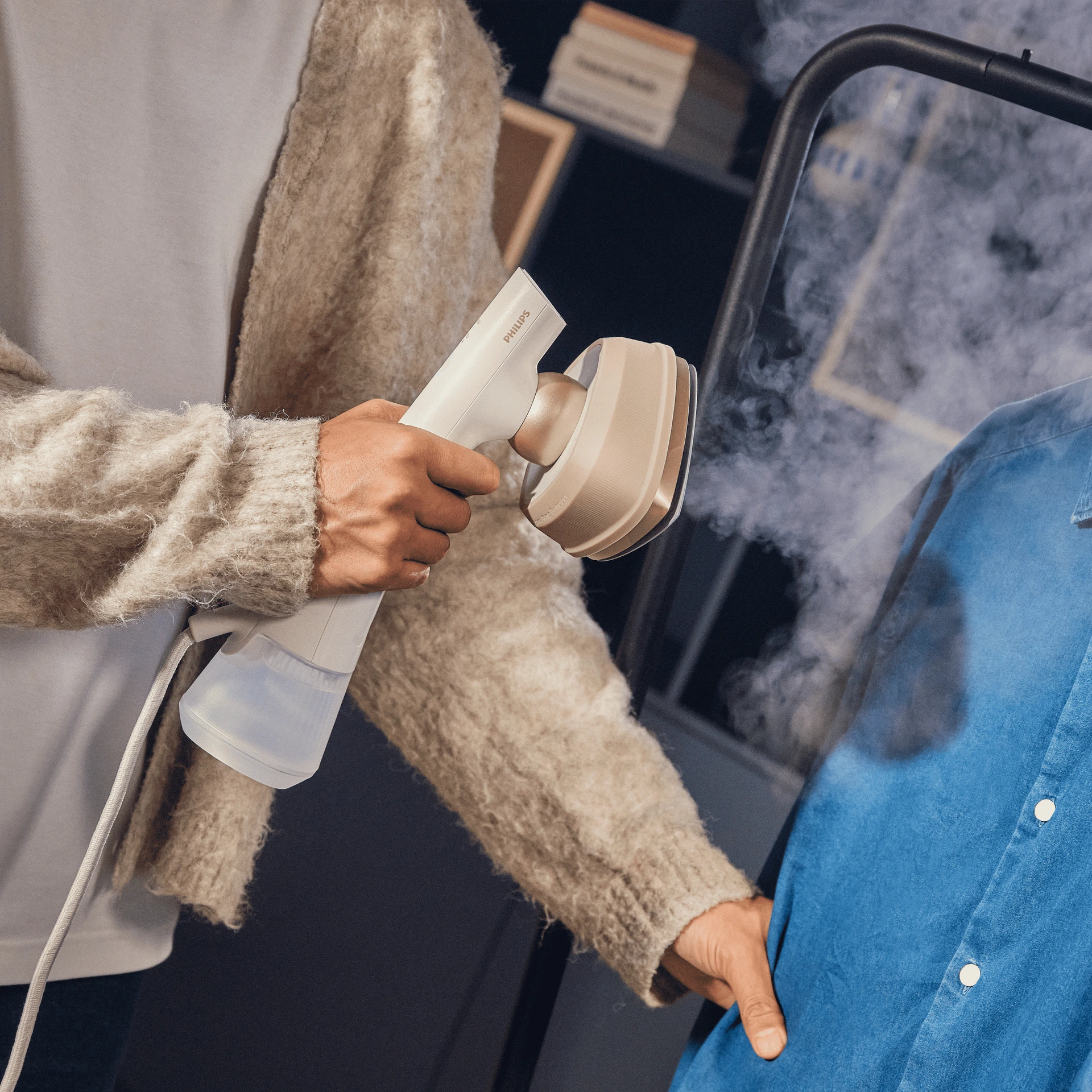 Met ongeveer de helft van het gewicht van een klassiek stoomstrijkijzer voelt het toestel bovendien minder aan als fitnessmateriaal en meer als een praktische tool.