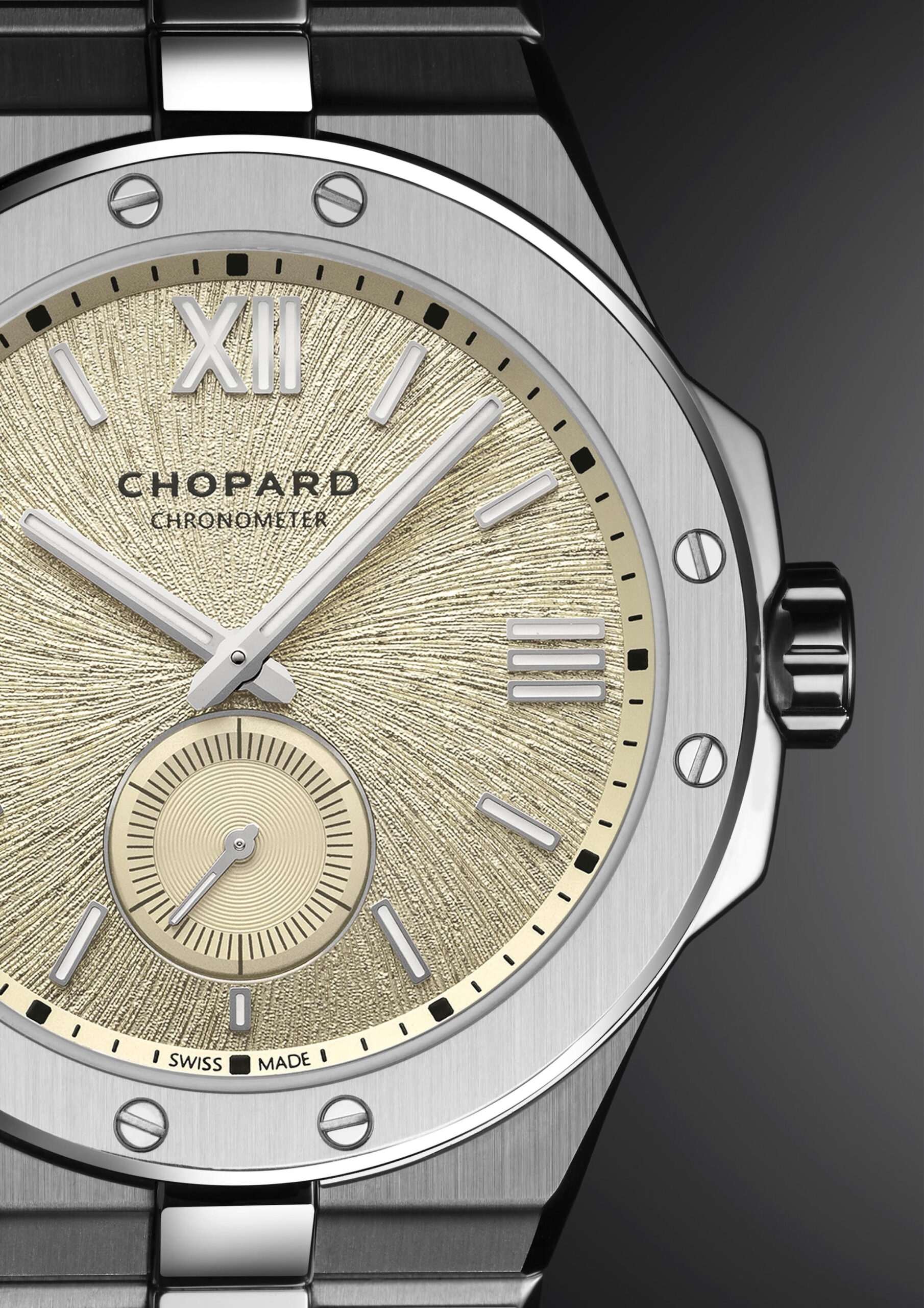 De echte eyecatcher? De nieuwe “Mountain Glow”-wijzerplaat. Subtiel champagnekleurig, met een textuur die doet denken aan rotsformaties in de Alpen en geïnspireerd op de iris van een arendsoog. Strakke indexen en wijzers in ethisch witgoud zorgen voor een clean, luxueus geheel.