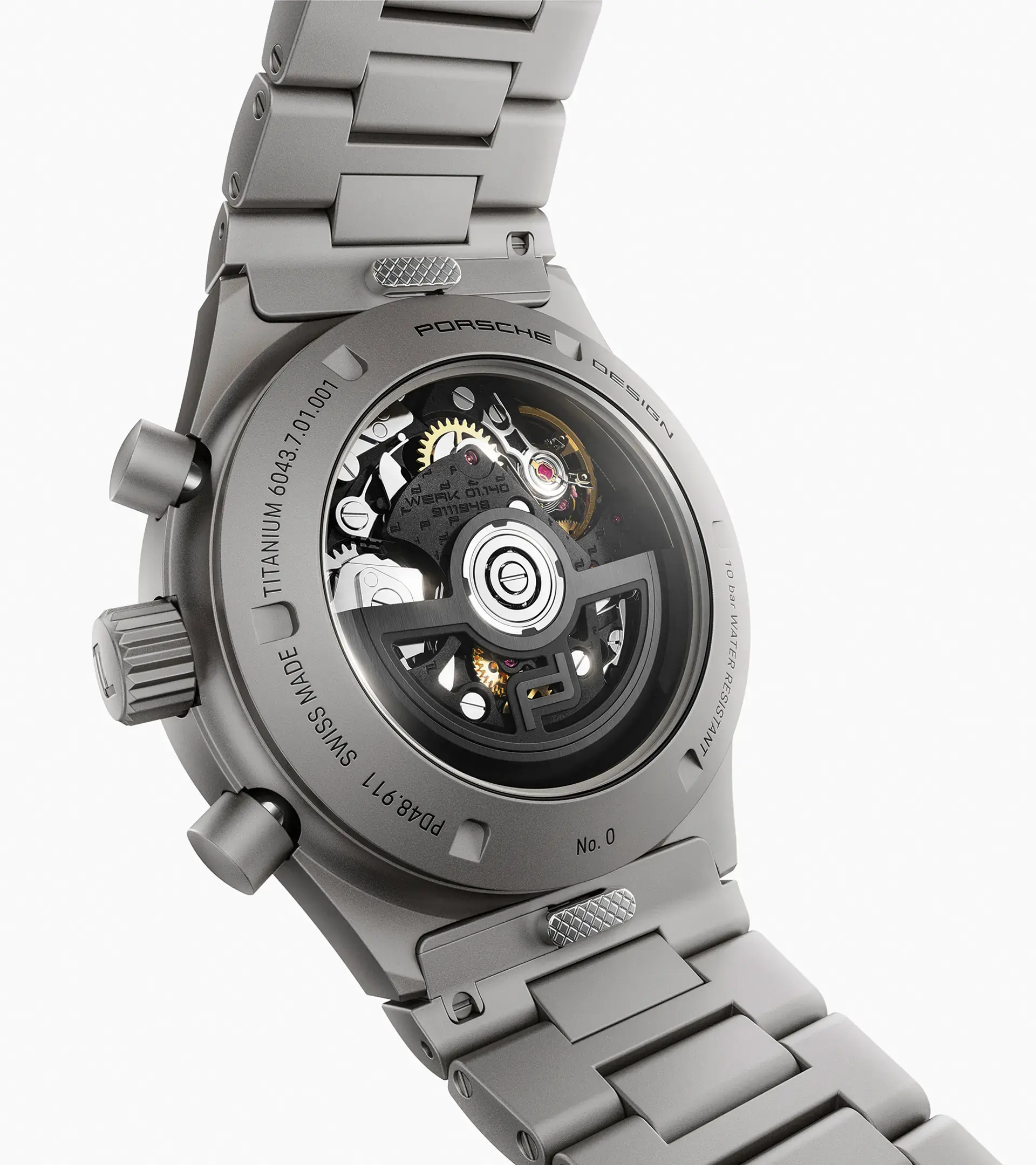 Binnenin tikt het Porsche Design WERK 1.140 kaliber, een COSC-gecertificeerd automatisch uurwerk dat staat voor precisie en betrouwbaarheid.
